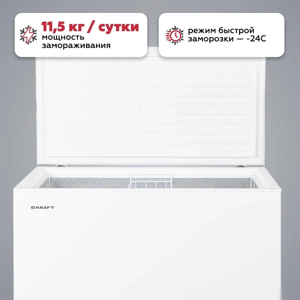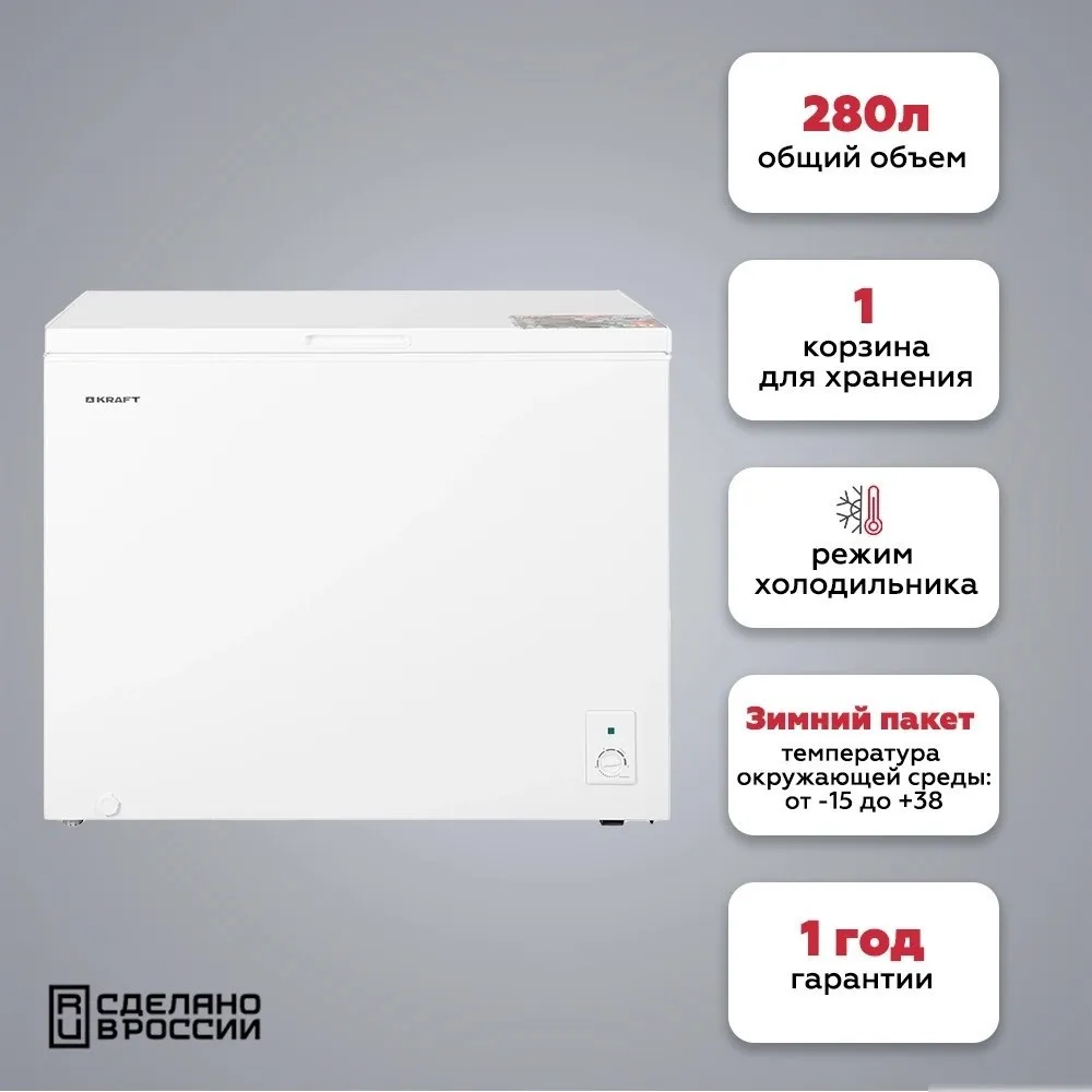 | Информация | - Морозильный ларь Kraft BD (W)-280RX станет отличным приобретением для квартиры, дома, отеля, офиса, либо промышленного помещения. - Устройство позволяет хранить большой объем продуктов питания длительное время. - Благодаря лаконичной белой расцветке корпуса модель дополнит собой любой интерьер. - Общий объем морозильного ларя достигает 280 л. - Устройство имеет высокий класс энергоэффективности – А+. - Для комфортного хранения продуктов в камере предусмотрена подвесная корзина. - Мощность замораживания модели составляет 11,5 кг/сутки. - Работа прибора сопровождается низким уровнем шума, не превышающим 41 дБ. |