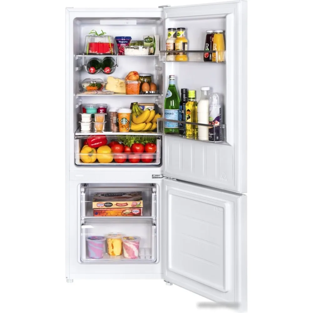 отдельностоящий, без No Frost, электронное управление, класс A+, полезный объём: 205 л (153 + 52 л), перенавешиваемые двери, лоток для яиц, 54x55x144 см, белый