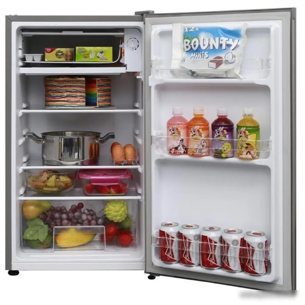 отдельностоящий, без No Frost, механическое управление, класс A+, полезный объём: 85 л, перенавешиваемые двери, лоток для яиц, 47.4x44.7x83.1 см, серебристый