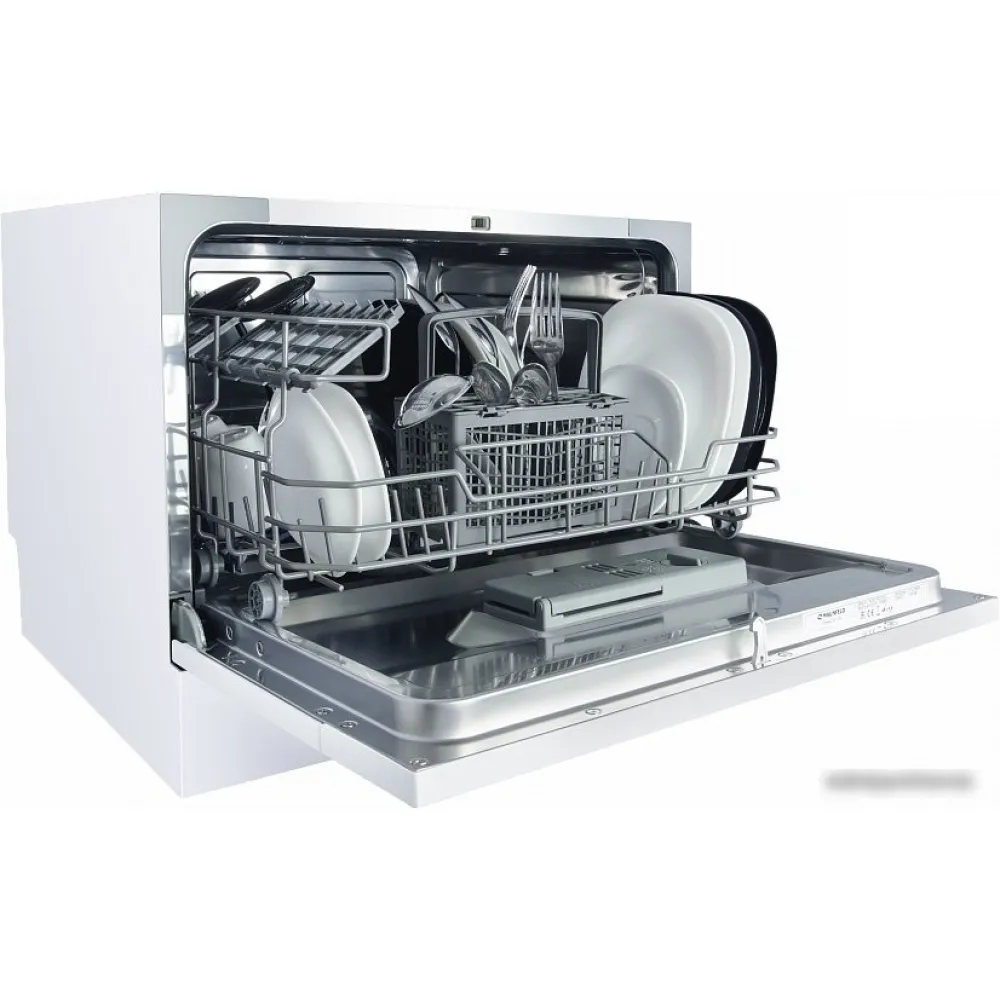 загрузка на 6 комплектов посуды, электронное управление, 6 программ, белый/черный цвет, сушка: стандартная (конденсация), индикация на полу: нет