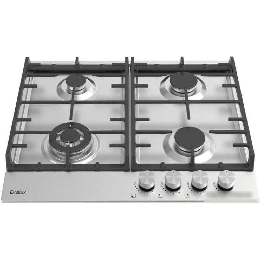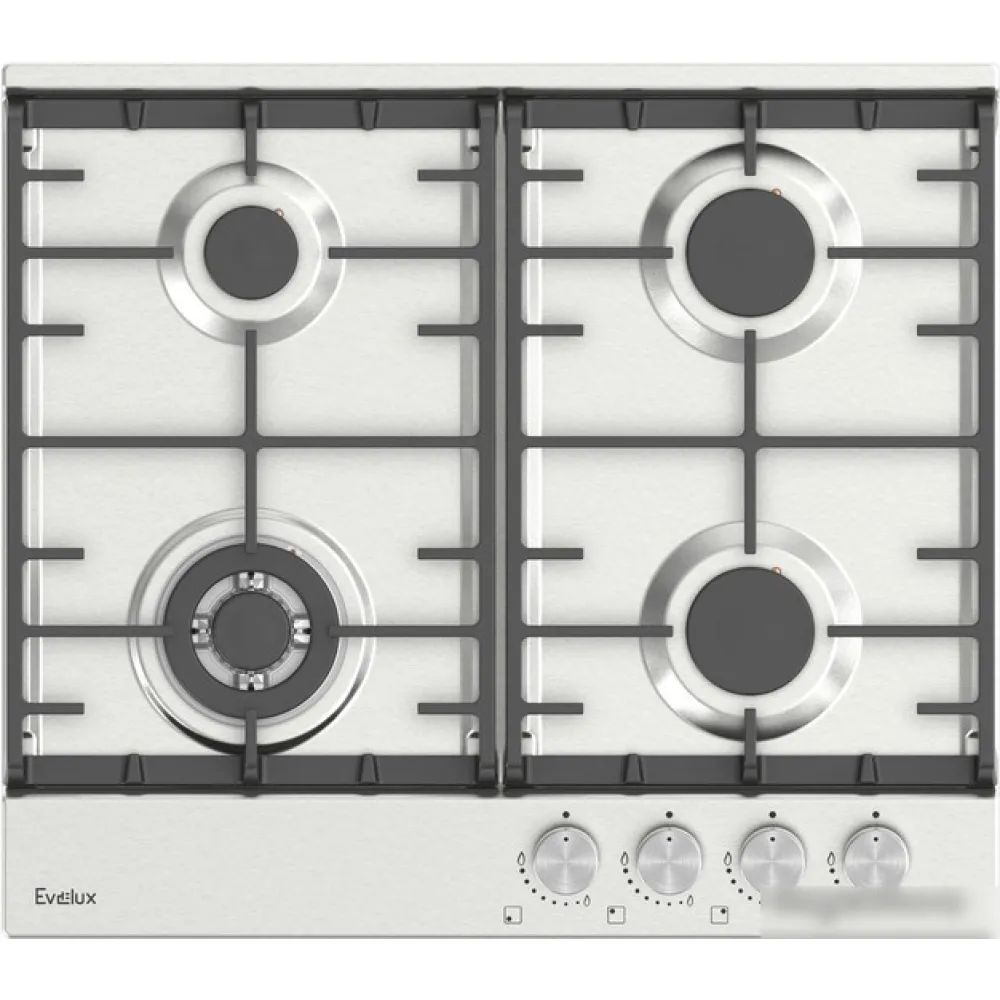 газовая на 4 конфорки, нержавеющая сталь, мощность: 6800 Вт, автоматический электроподжиг, газ-контроль, решетки: чугун, независимая установка, размеры (ШхГ): 59x51.5 см