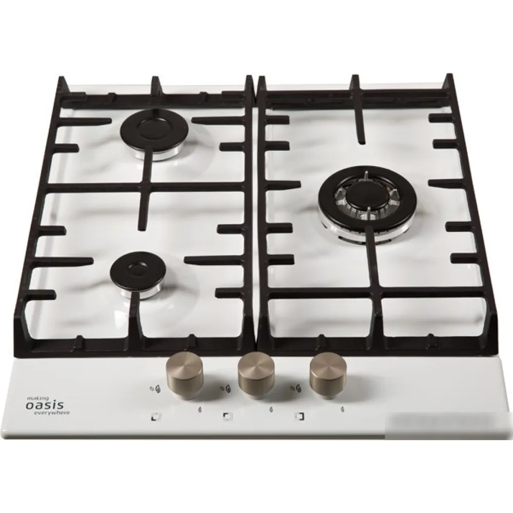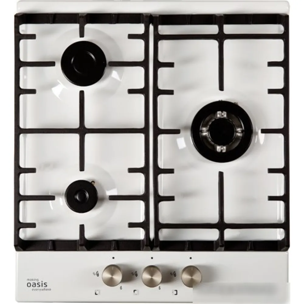 газовая на 3 конфорки, эмалированная сталь, мощность: 5900 Вт, автоматический электроподжиг, газ-контроль, решетки: чугун, независимая установка, размеры (ШхГ): 46x52 см
