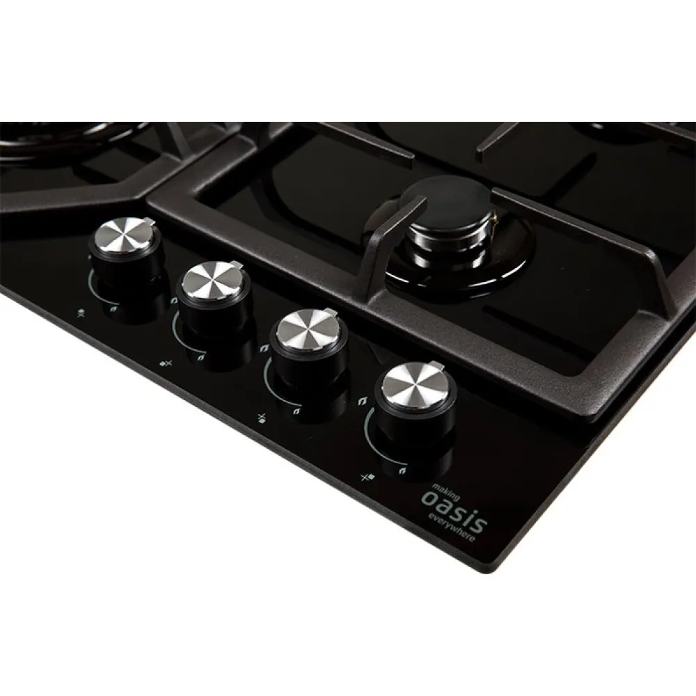 газовая на 4 конфорки, закаленное стекло, мощность: 8000 Вт, автоматический электроподжиг, газ-контроль, решетки: чугун, независимая установка, размеры (ШхГ): 61x51 см