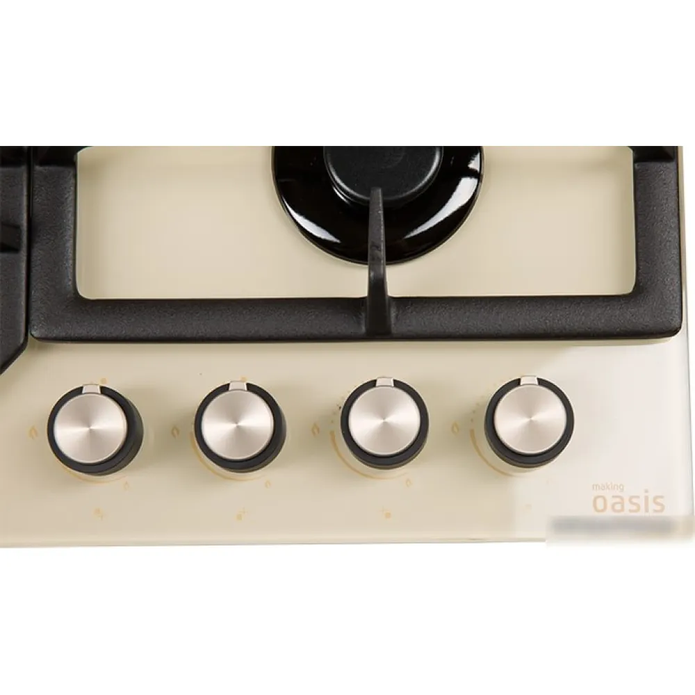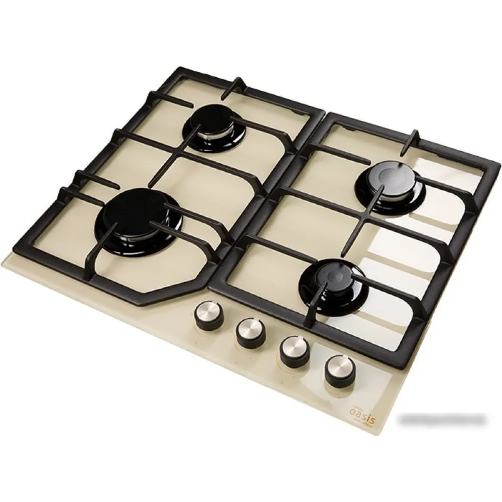 газовая на 4 конфорки, закаленное стекло, мощность: 7900 Вт, автоматический электроподжиг, газ-контроль, решетки: чугун, независимая установка, размеры (ШхГ): 61x51 см