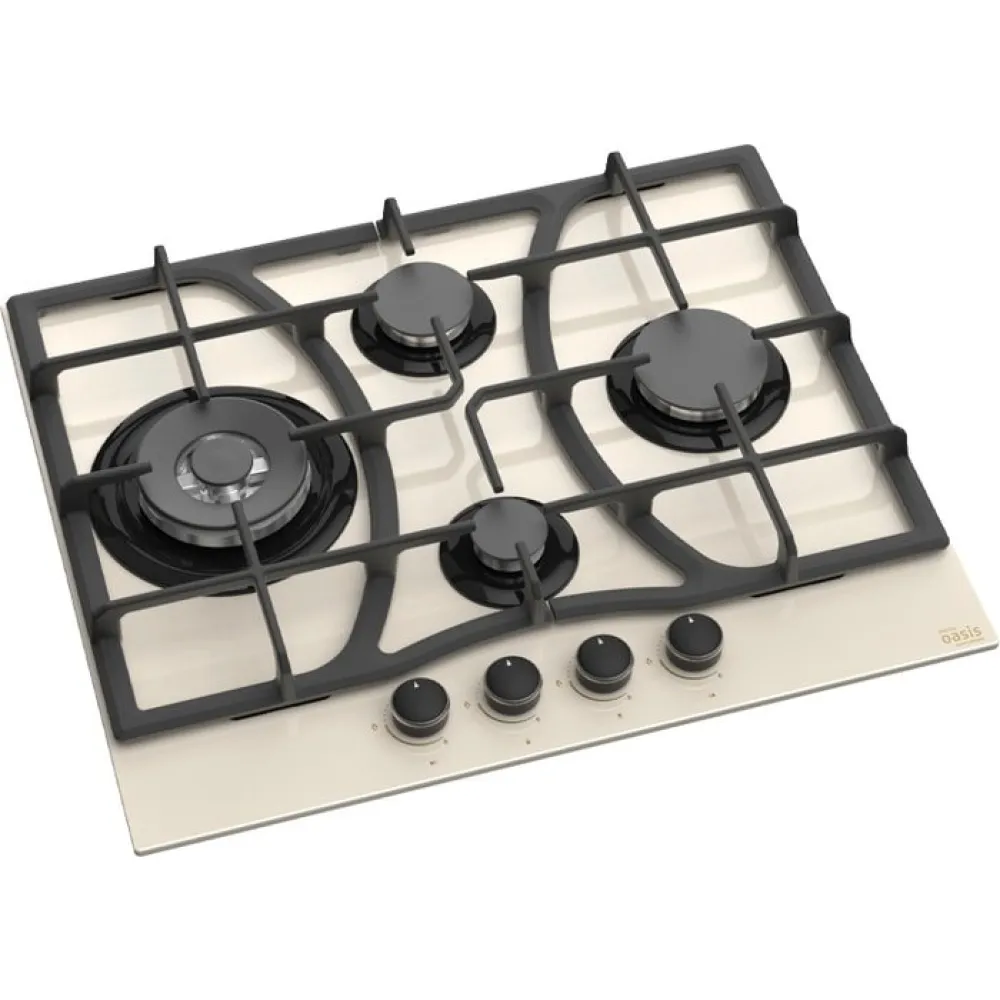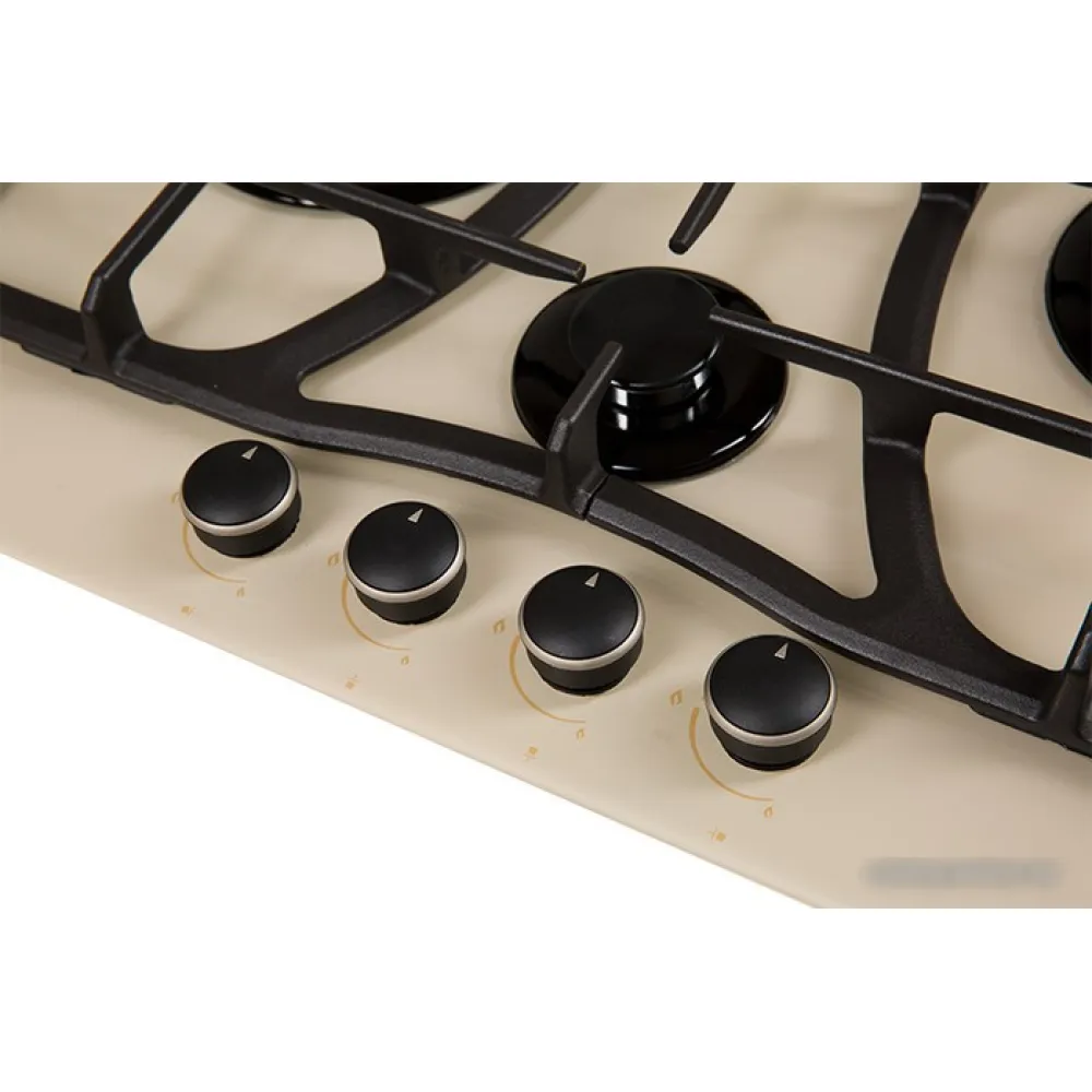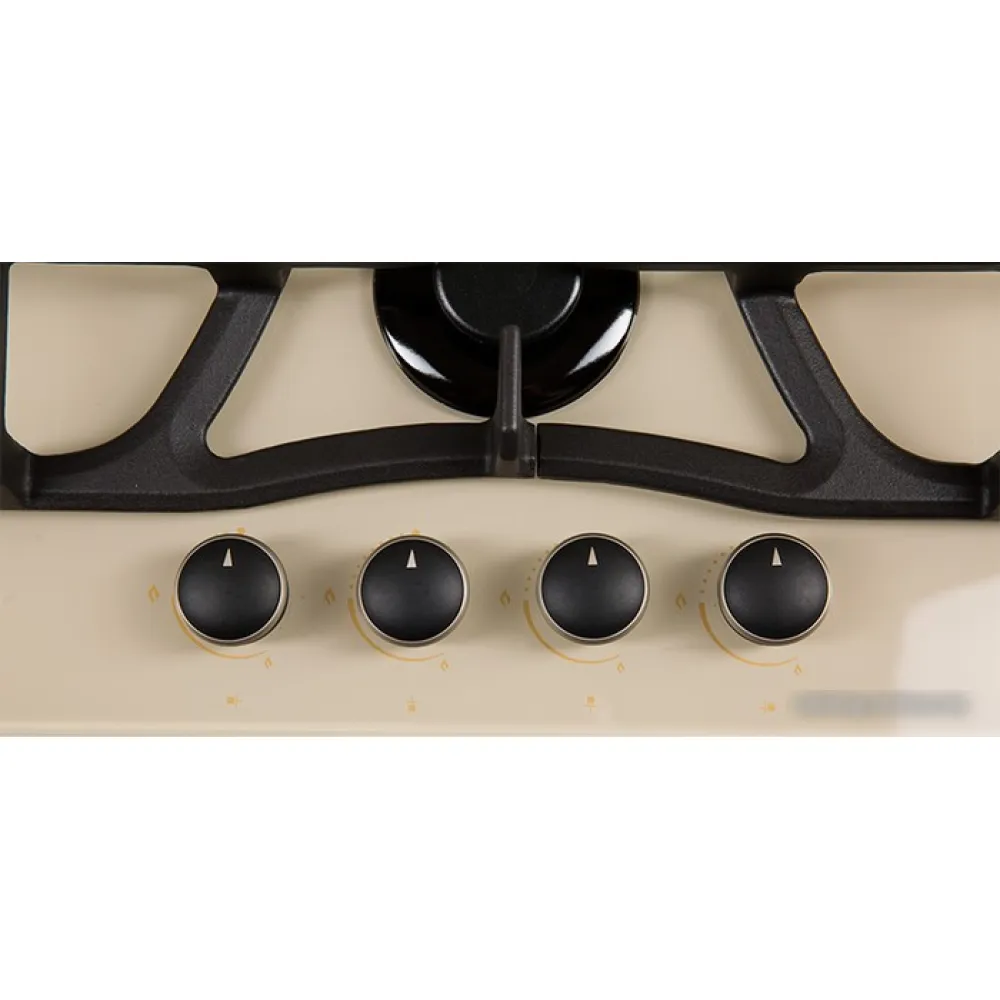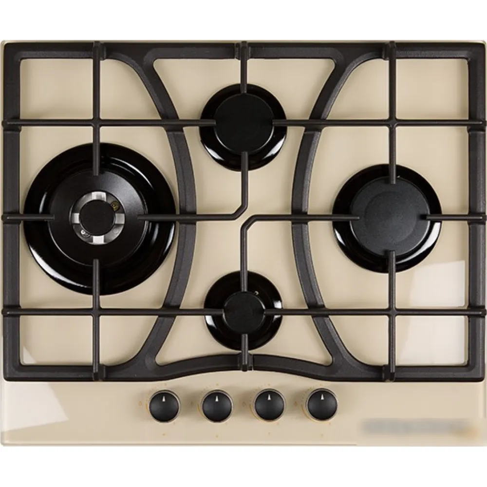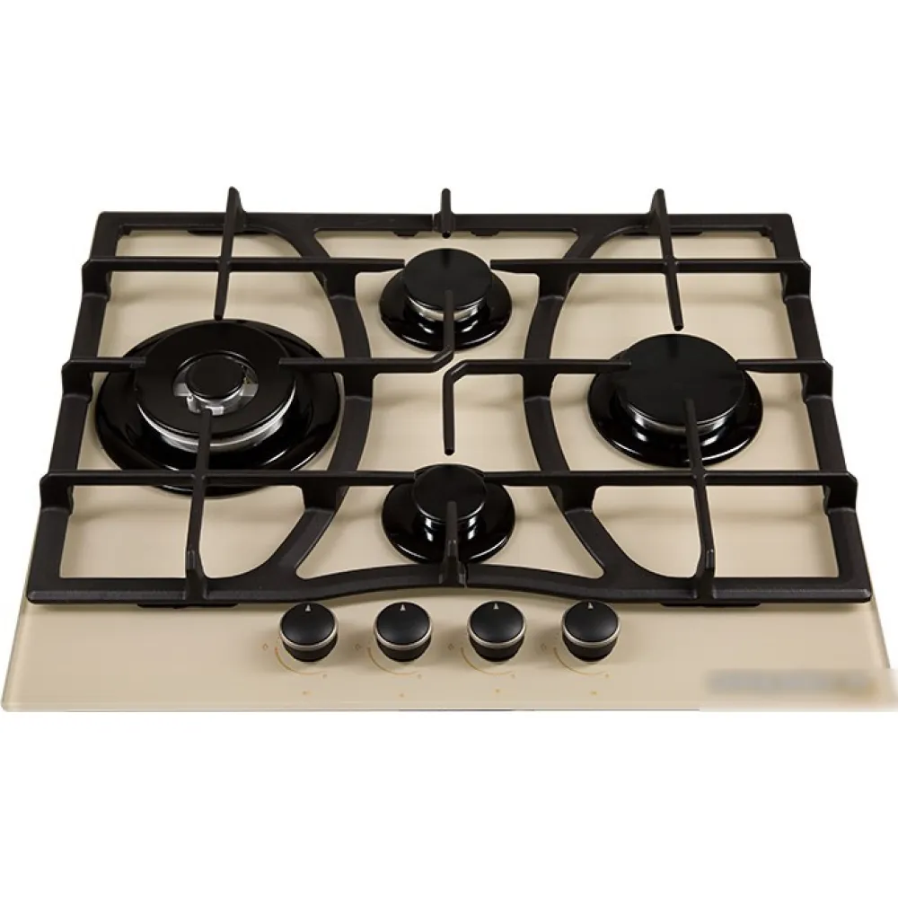 газовая на 4 конфорки, закаленное стекло, мощность: 9700 Вт, автоматический электроподжиг, газ-контроль, решетки: чугун, независимая установка, размеры (ШхГ): 61x51 см