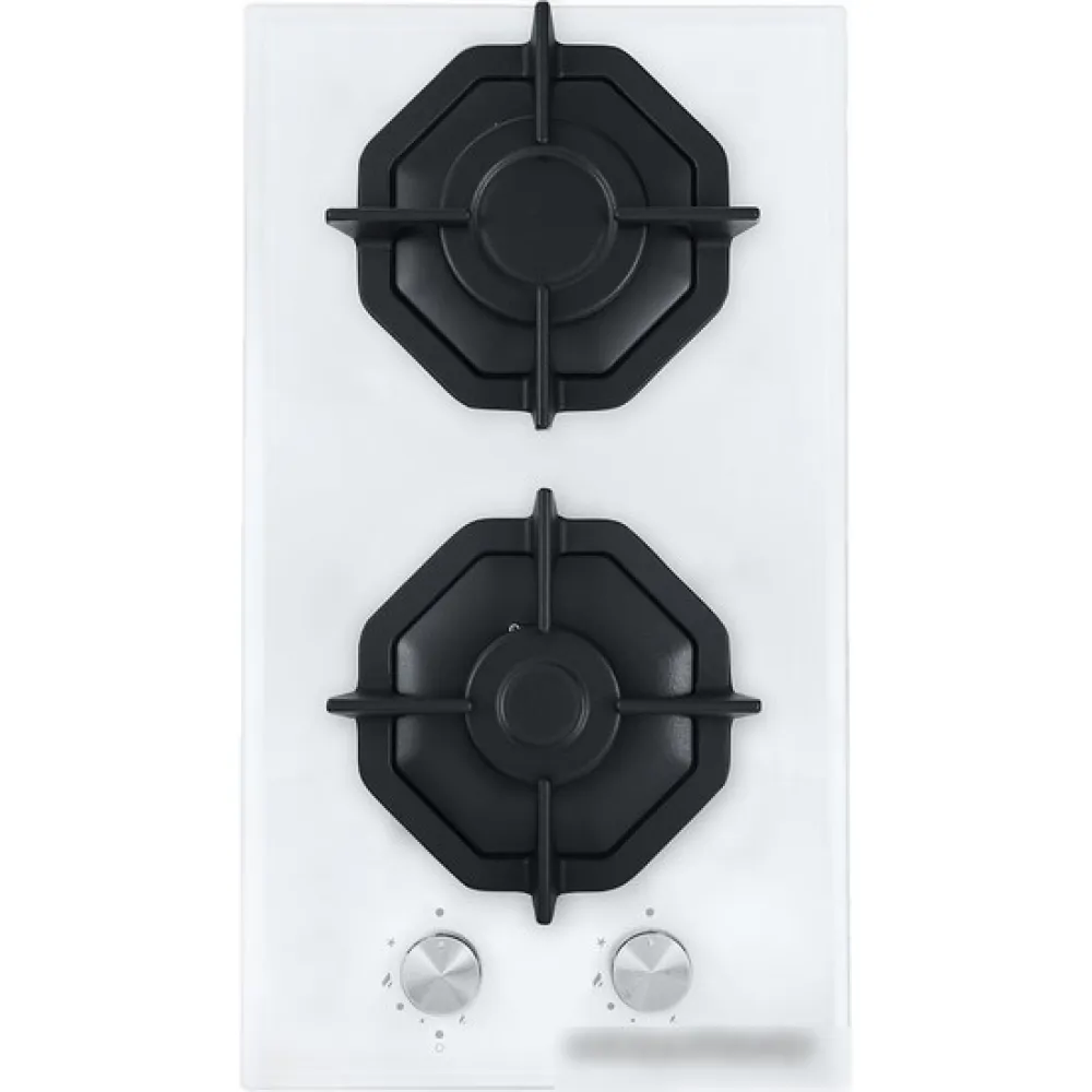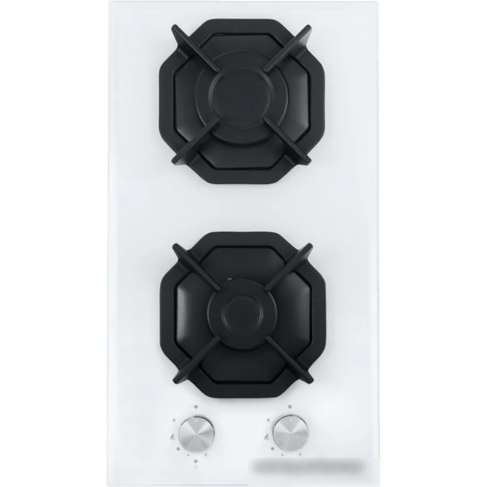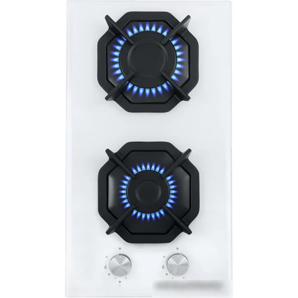 газовая на 2 конфорки, закаленное стекло, мощность: 4300 Вт, автоматический электроподжиг, газ-контроль, решетки: чугун, независимая установка