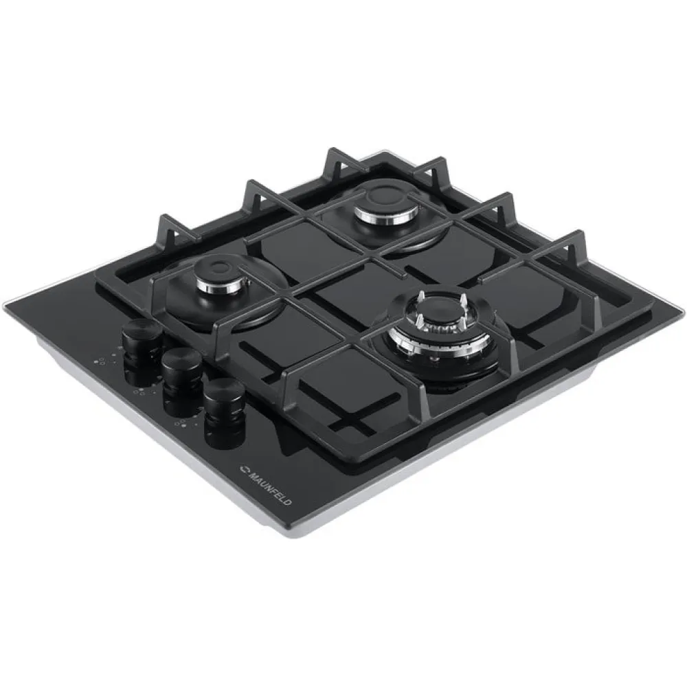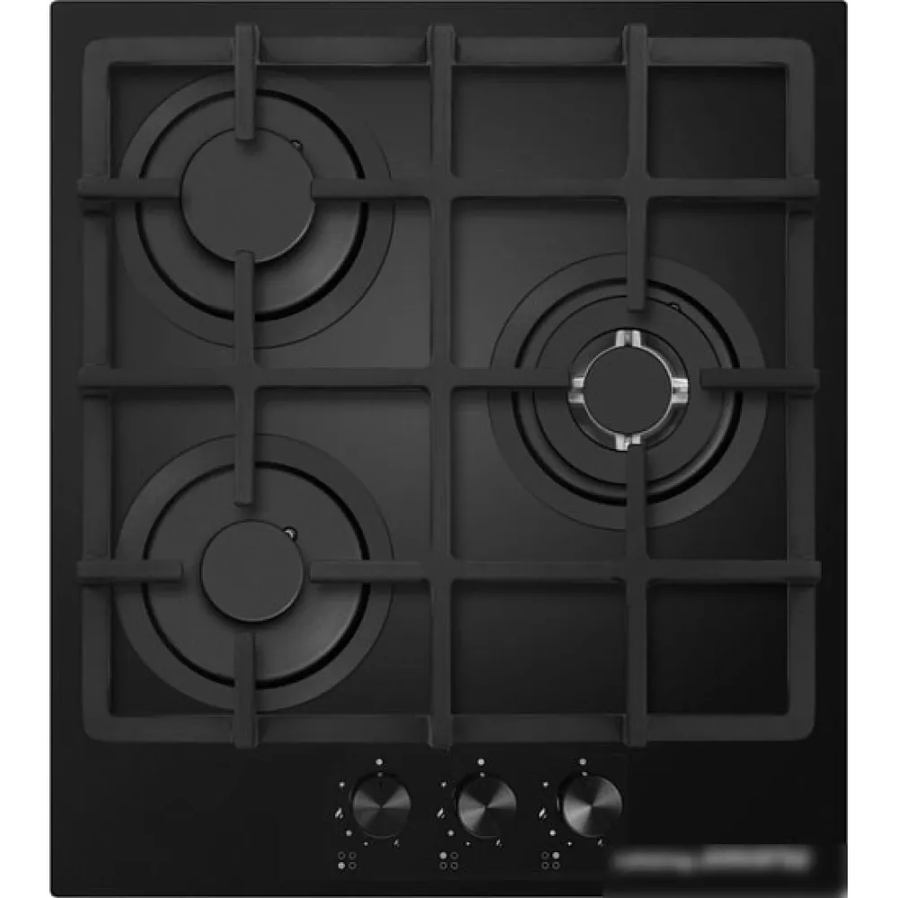 газовая на 3 конфорки, закаленное стекло, мощность: 5700 Вт, автоматический электроподжиг, газ-контроль, решетки: чугун, независимая установка, размеры (ШхГ): 44x51 см