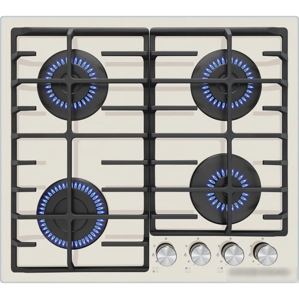 газовая на 4 конфорки, закаленное стекло, мощность: 7000 Вт, автоматический электроподжиг, газ-контроль, решетки: чугун, независимая установка, размеры (ШхГ): 59x51.5 см