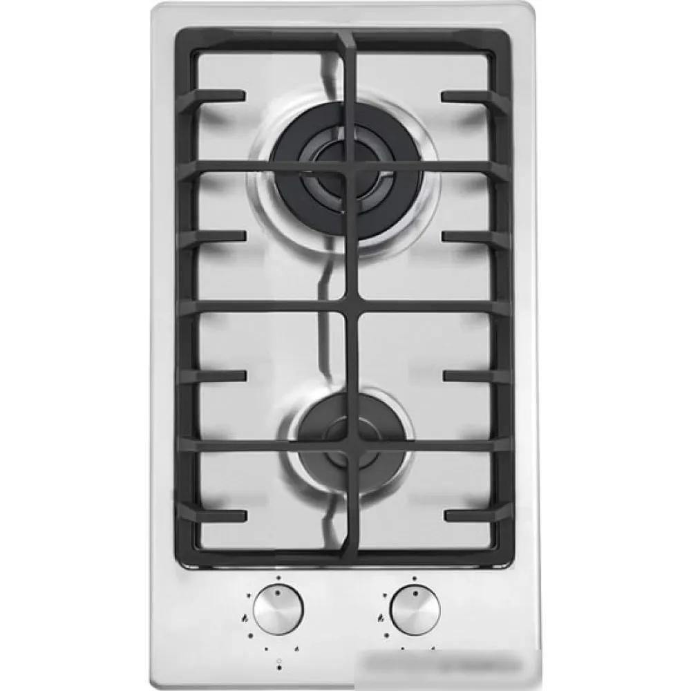 газовая на 2 конфорки, нержавеющая сталь, мощность: 4700 Вт, автоматический электроподжиг, газ-контроль, решетки: чугун, независимая установка, размеры (ШхГ): 32x52 см