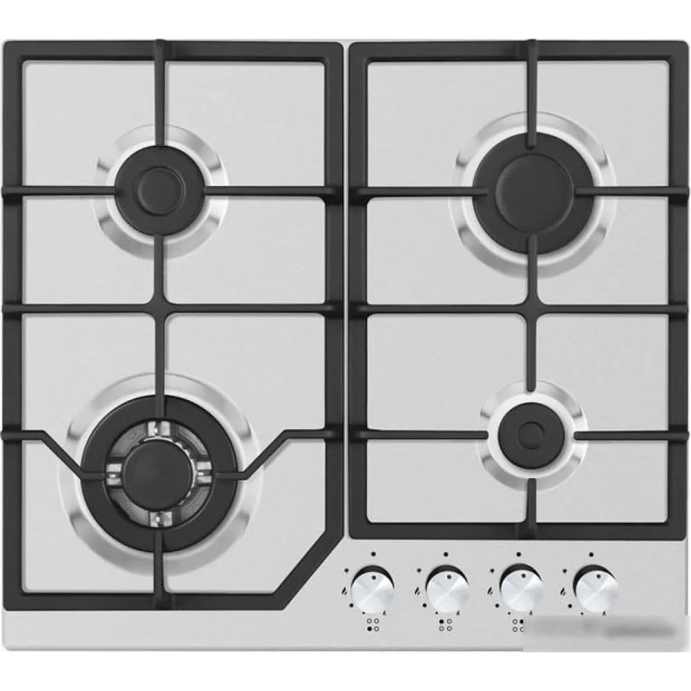 газовая на 4 конфорки, нержавеющая сталь, мощность: 8200 Вт, автоматический электроподжиг, газ-контроль, решетки: чугун, независимая установка, размеры (ШхГ): 59x51.5 см