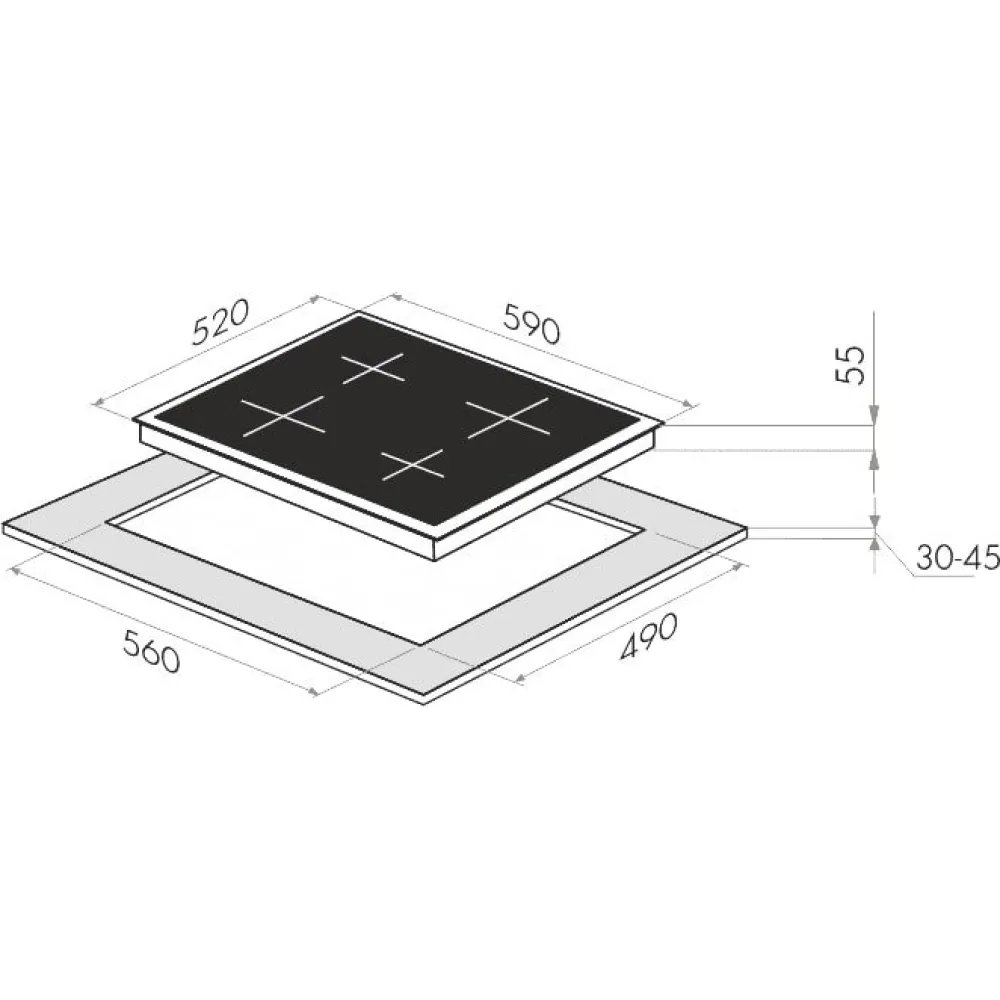индукционная на 4 конфорки, cтеклокерамика, мощность: 7200 Вт, независимая установка, размеры (ШхГ): 59x52 см