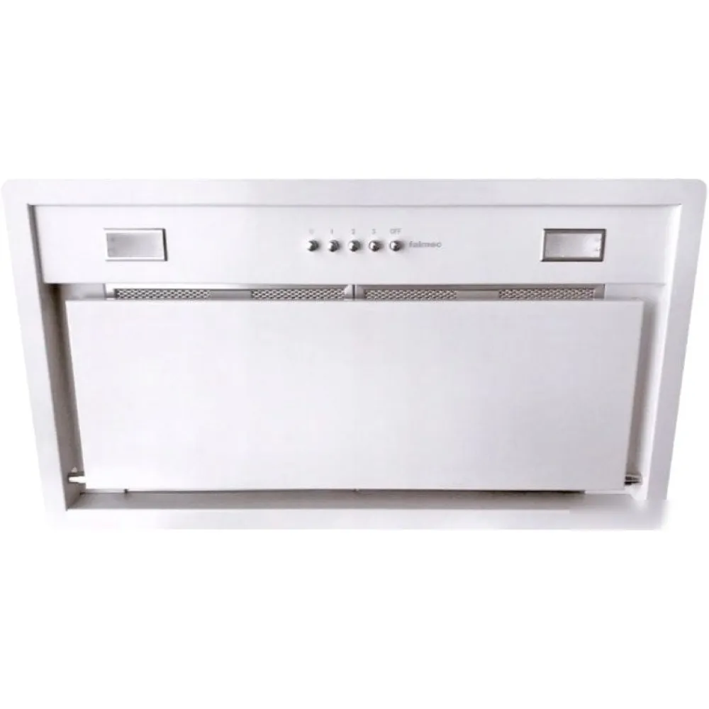 конструкция скрытая, монтаж для встраивания, ширина 56 см, управление механическое/кнопочное, производительность вытяжки 1040 м?/ч, цвет белый