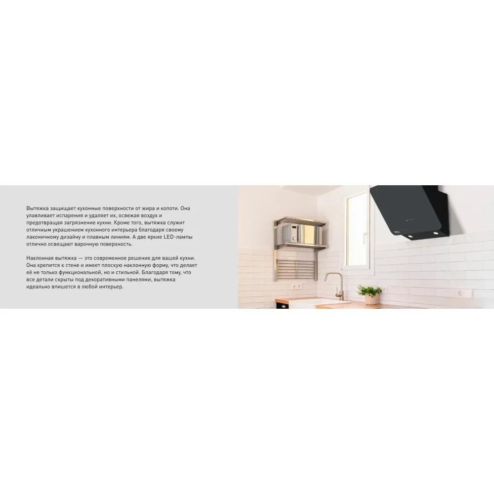 конструкция наклонная, монтаж настенный, ширина 60 см, управление сенсорное, производительность мотора 1050 м?/ч, цвет серый