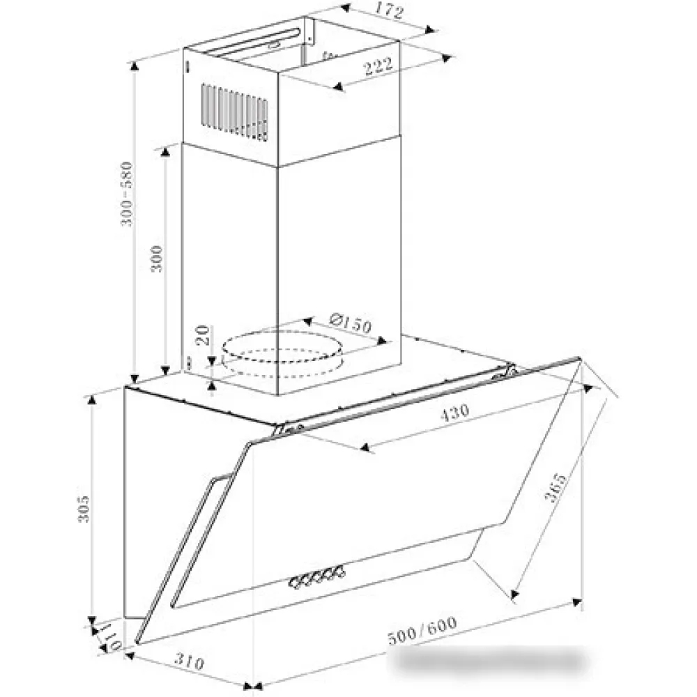 конструкция наклонная, монтаж настенный, ширина 60 см, управление механическое/кнопочное, производительность мотора 700 м3/ч, цвет бежевый/слоновая кость