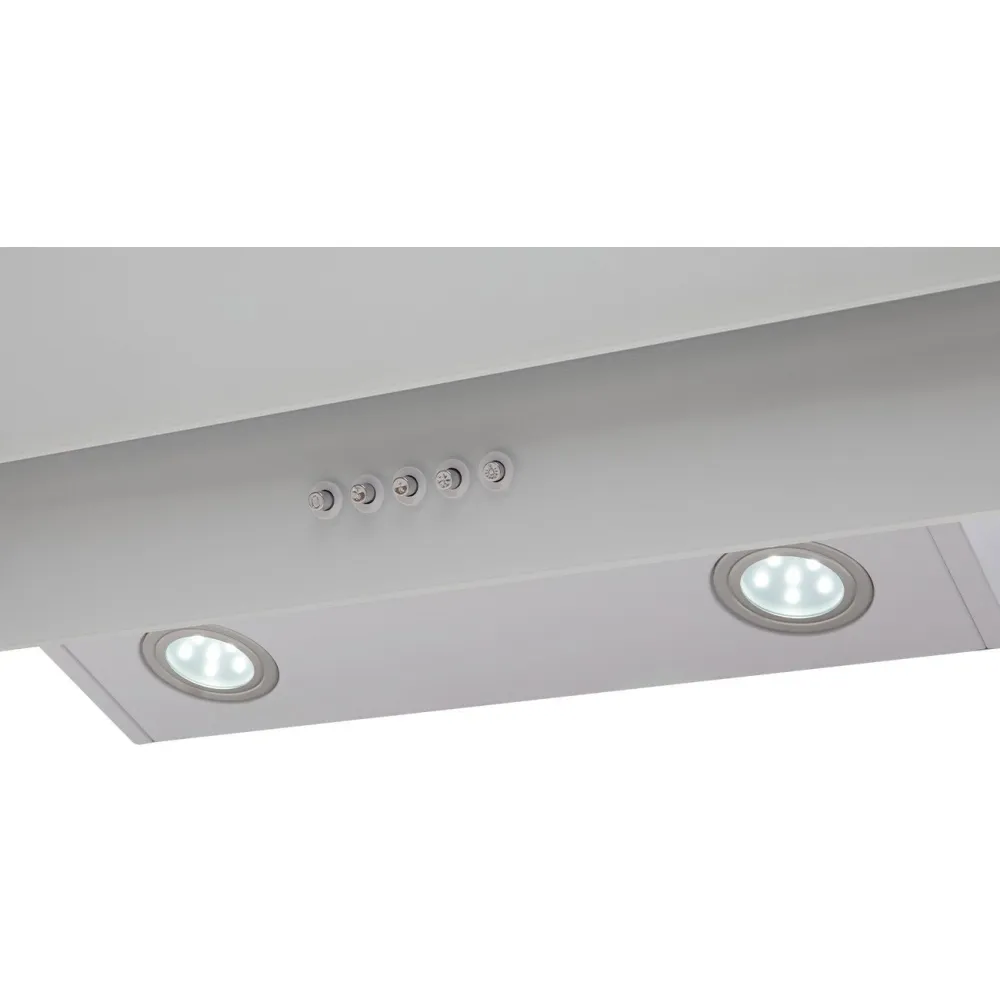 конструкция наклонная, монтаж настенный, ширина 60 см, управление механическое/кнопочное, производительность мотора 700 м?/ч, цвет белый