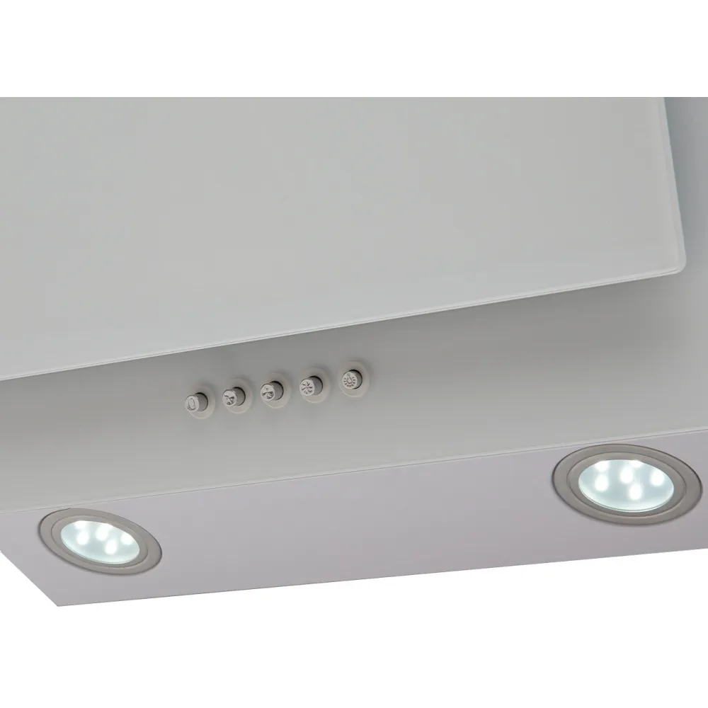 конструкция наклонная, монтаж настенный, ширина 60 см, управление механическое/кнопочное, производительность мотора 700 м?/ч, цвет белый