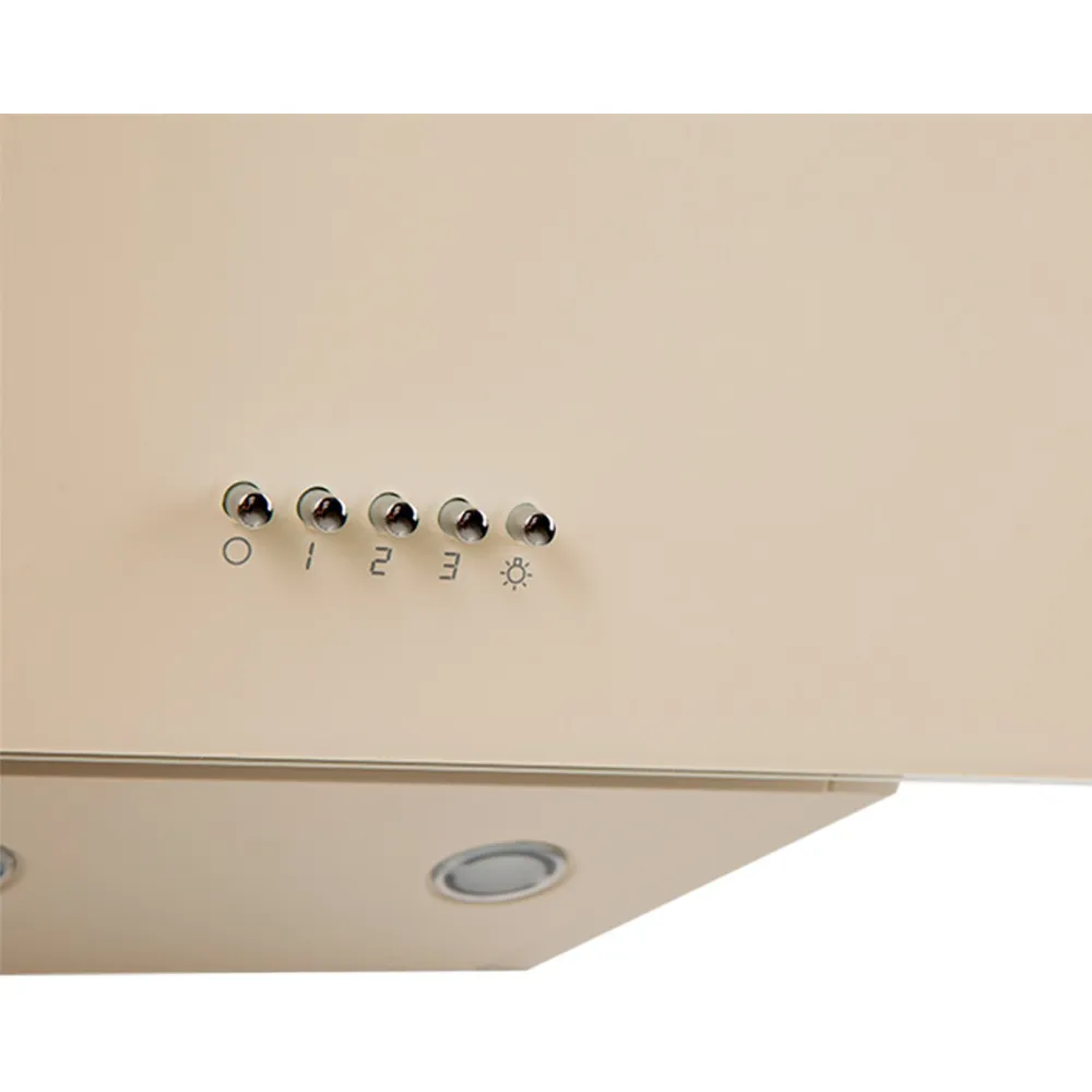 конструкция наклонная, монтаж настенный, ширина 49.5 см, управление механическое/кнопочное, производительность мотора 600 м?/ч, цвет бежевый
