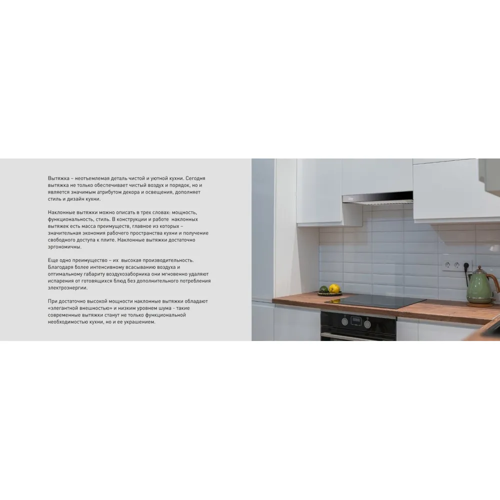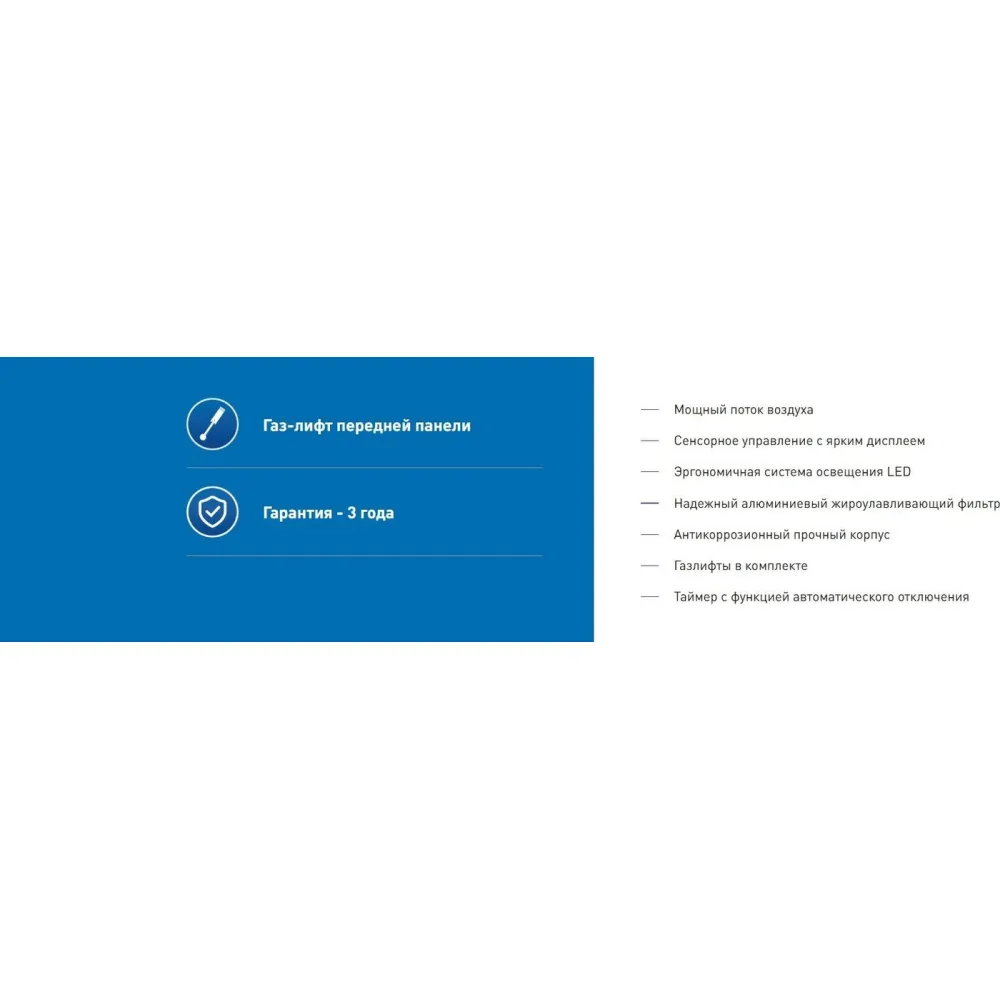 | Информация | - Вытяжка – ключевой элемент для создания чистоты и уюта на вашей кухне. Она не только очищает воздух и поддерживает порядок, но и служит важным элементом декора, подчеркивая стиль и дизайн вашего пространства. - Наклонные вытяжки можно охарактеризовать тремя словами: мощность, функциональность и |