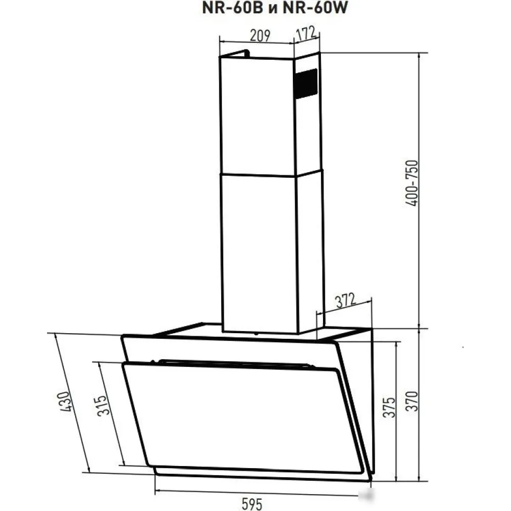 конструкция наклонная, монтаж настенный, ширина 59.5 см, управление сенсорное, производительность мотора 1000 м?/ч, цвет белый