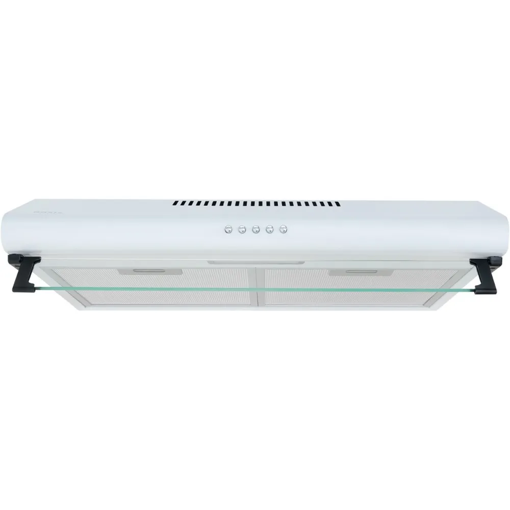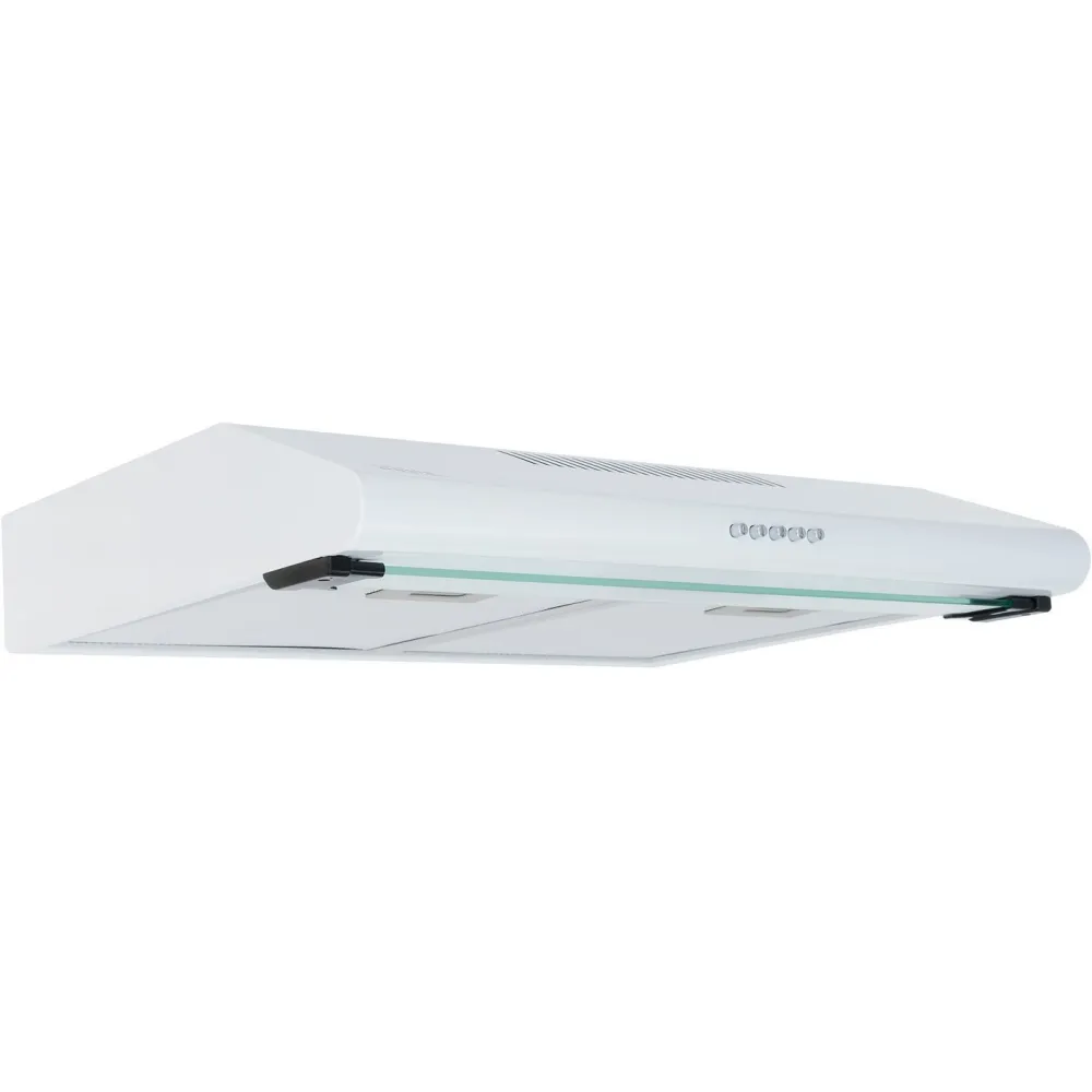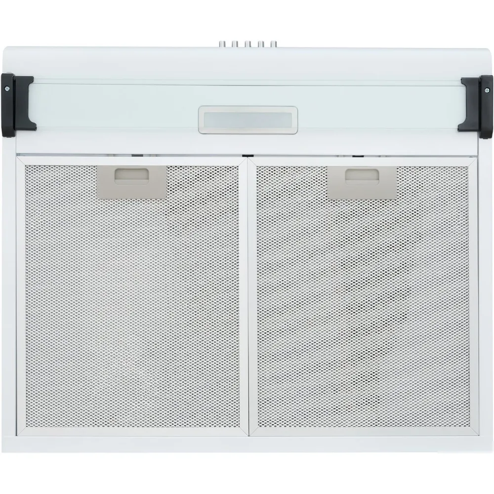 конструкция плоская, монтаж настенный, ширина 59.5 см, управление механическое/кнопочное, производительность мотора 400 м?/ч, цвет белый