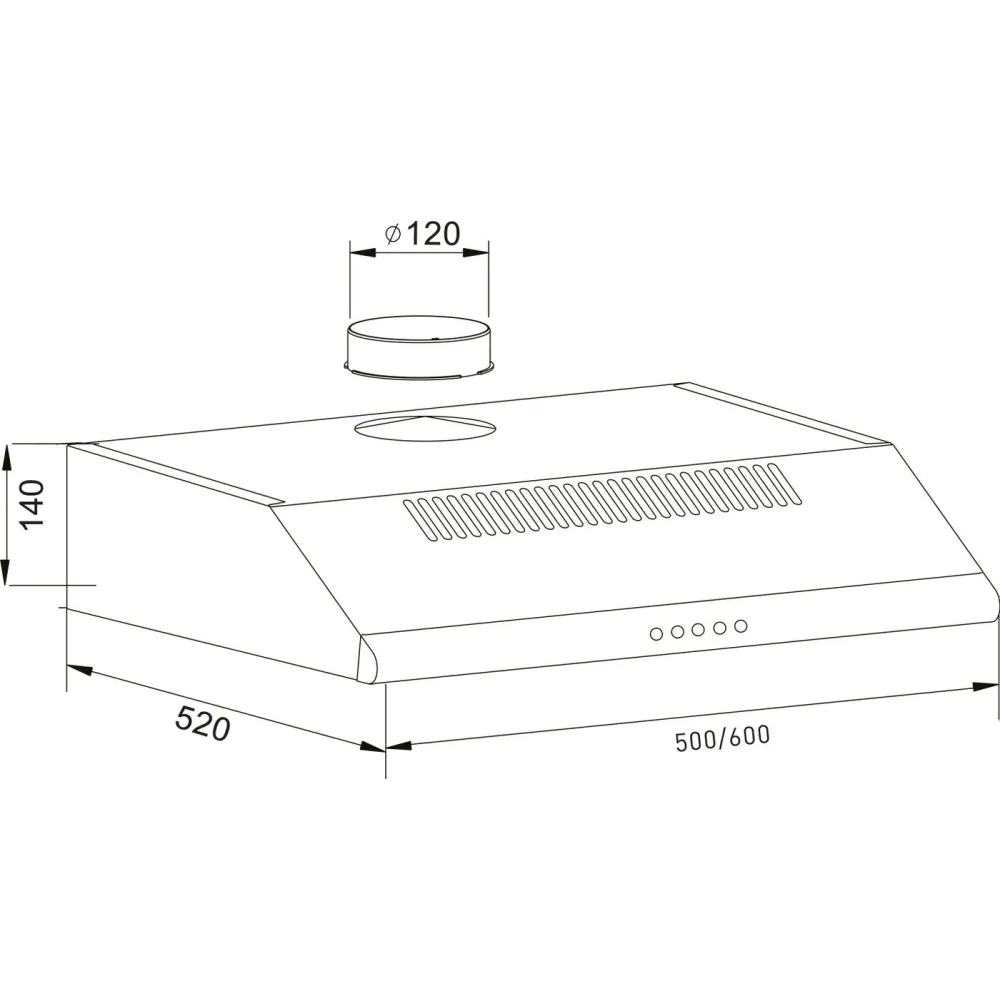 конструкция плоская, монтаж настенный, ширина 50 см, управление механическое/кнопочное, производительность мотора 450 м?/ч, цвет бежевый