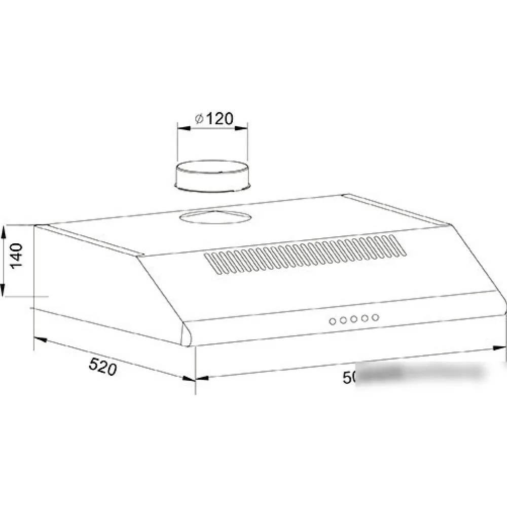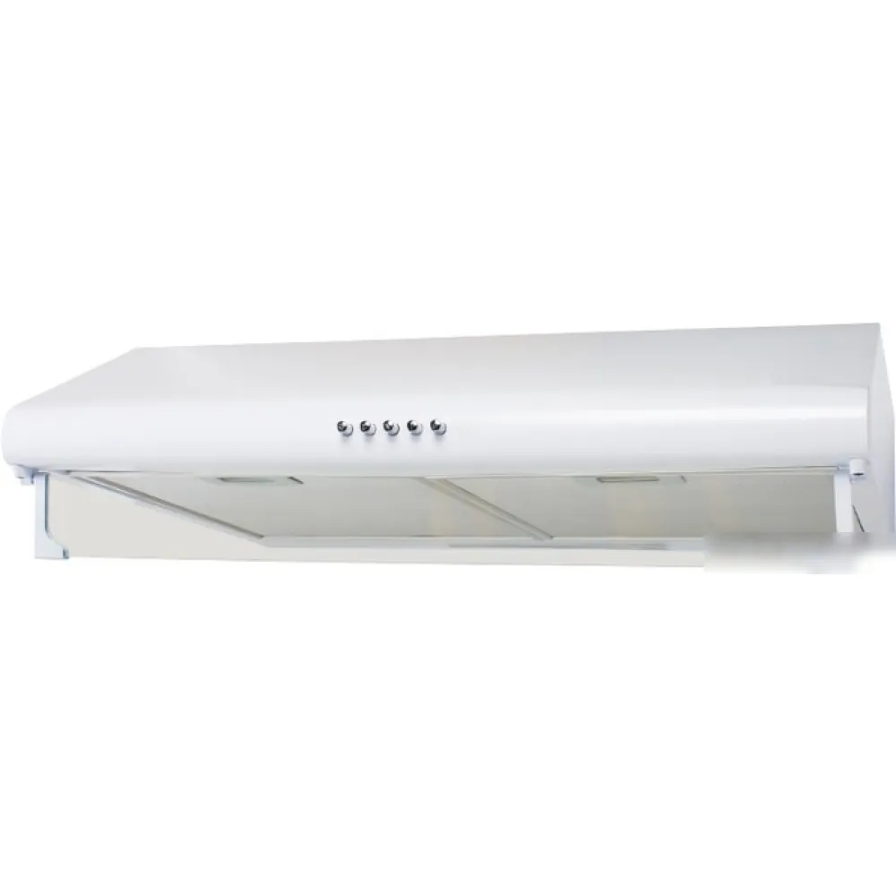 конструкция плоская, монтаж настенный, ширина 50 см, управление механическое/кнопочное, производительность мотора 350 м3/ч, цвет белый