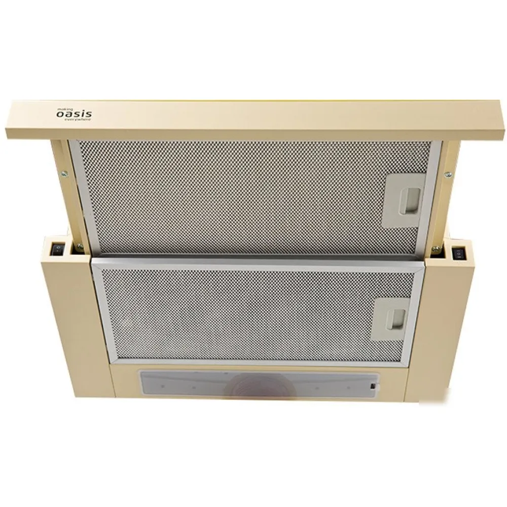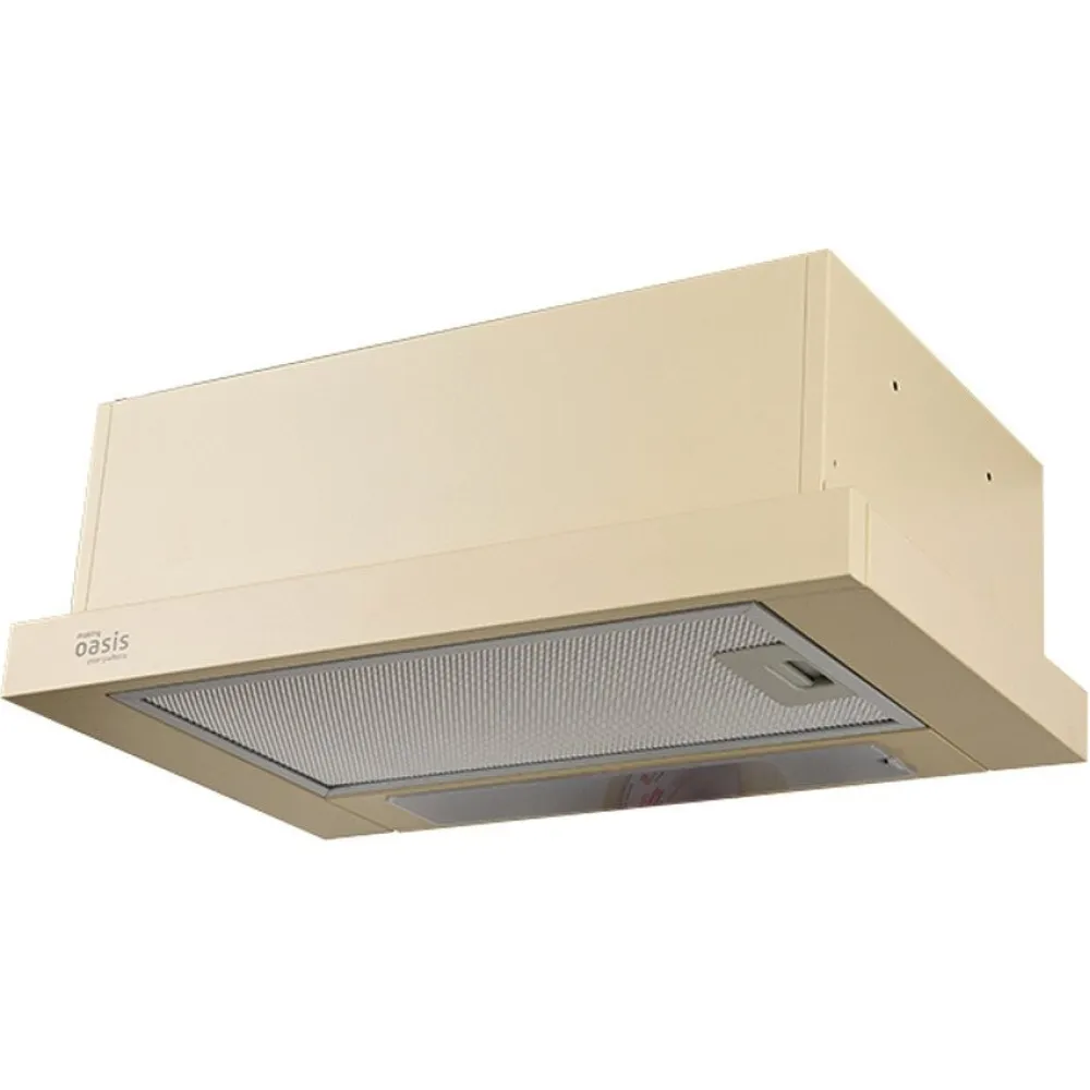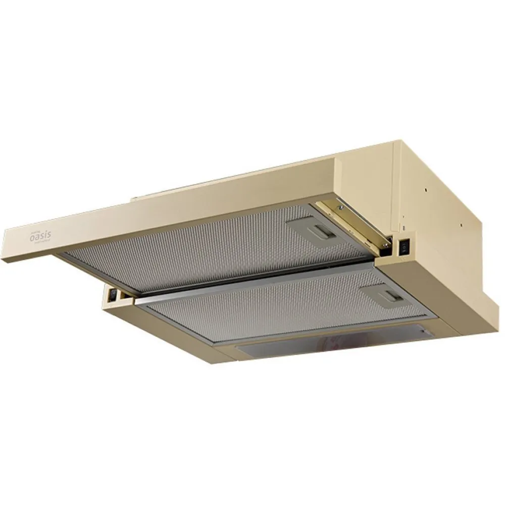 конструкция телескопическая, монтаж для встраивания, ширина 50 см, управление механическое/слайдерное, производительность мотора 500 м?/ч, цвет бежевый