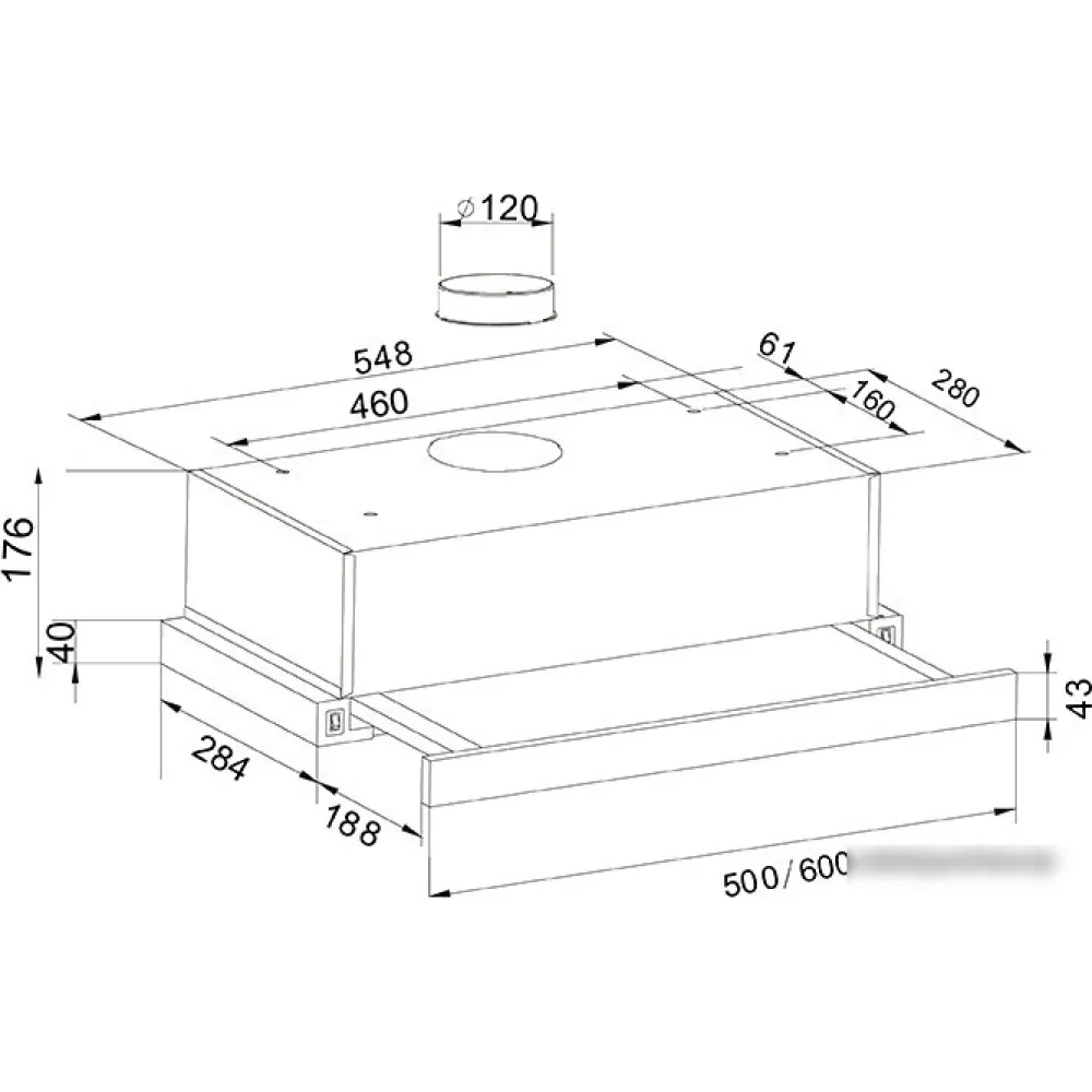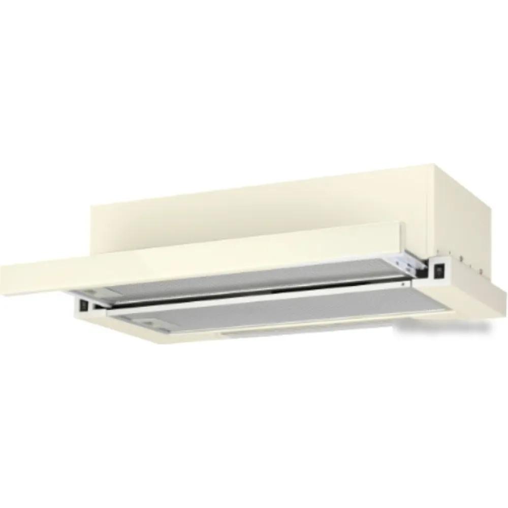 конструкция телескопическая, монтаж для встраивания, ширина 60 см, управление механическое/кнопочное, производительность мотора 500 м3/ч, цвет бежевый/слоновая кость