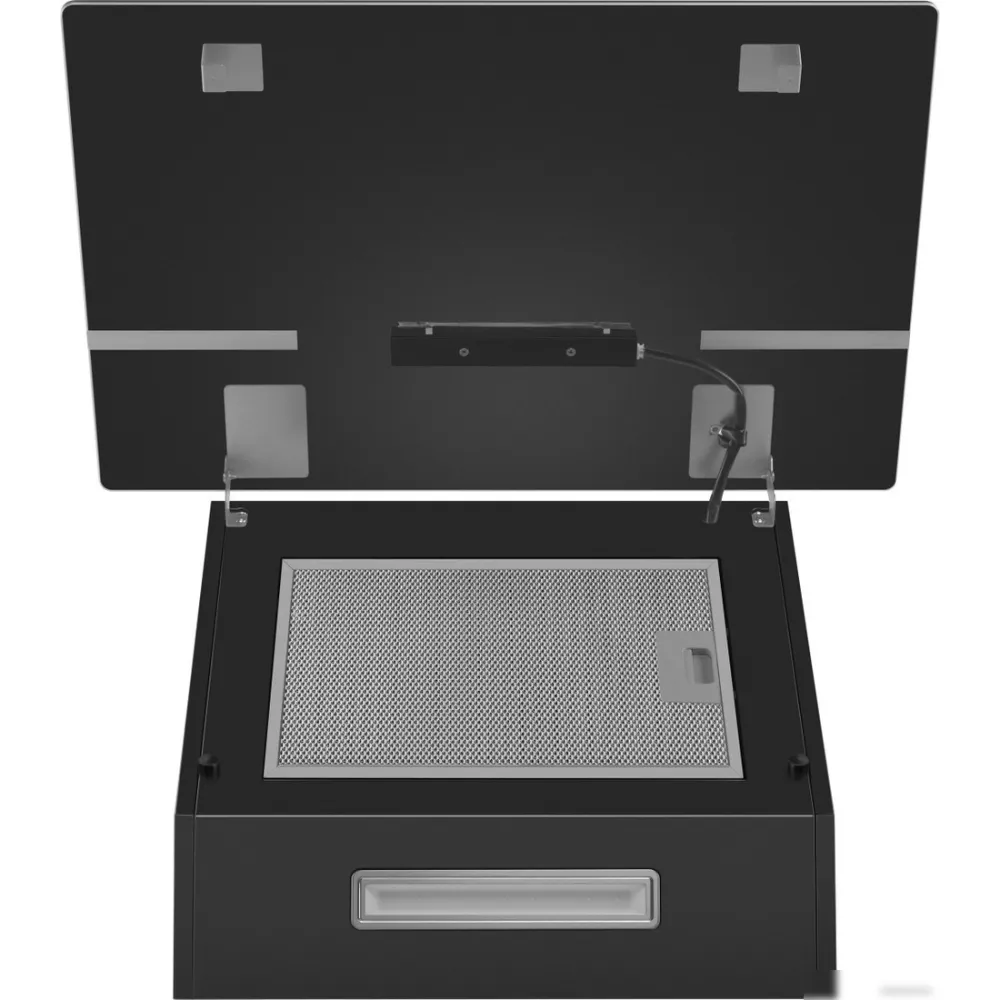 конструкция наклонная, монтаж настенный, ширина 60 см, управление сенсорное, производительность мотора 850 м?/ч, цвет черный
