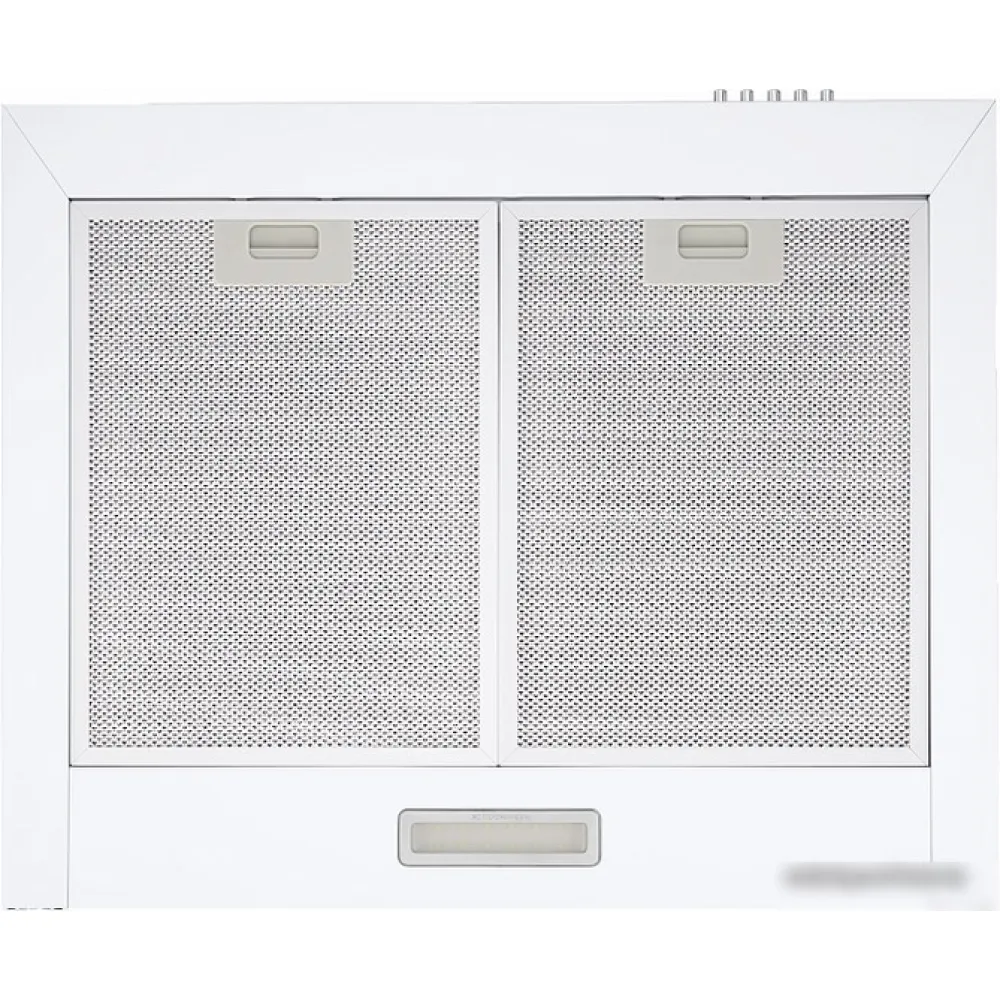 конструкция купольная, монтаж настенный, ширина 59.5 см, управление механическое/кнопочное, производительность мотора 620 м3/ч, цвет белый