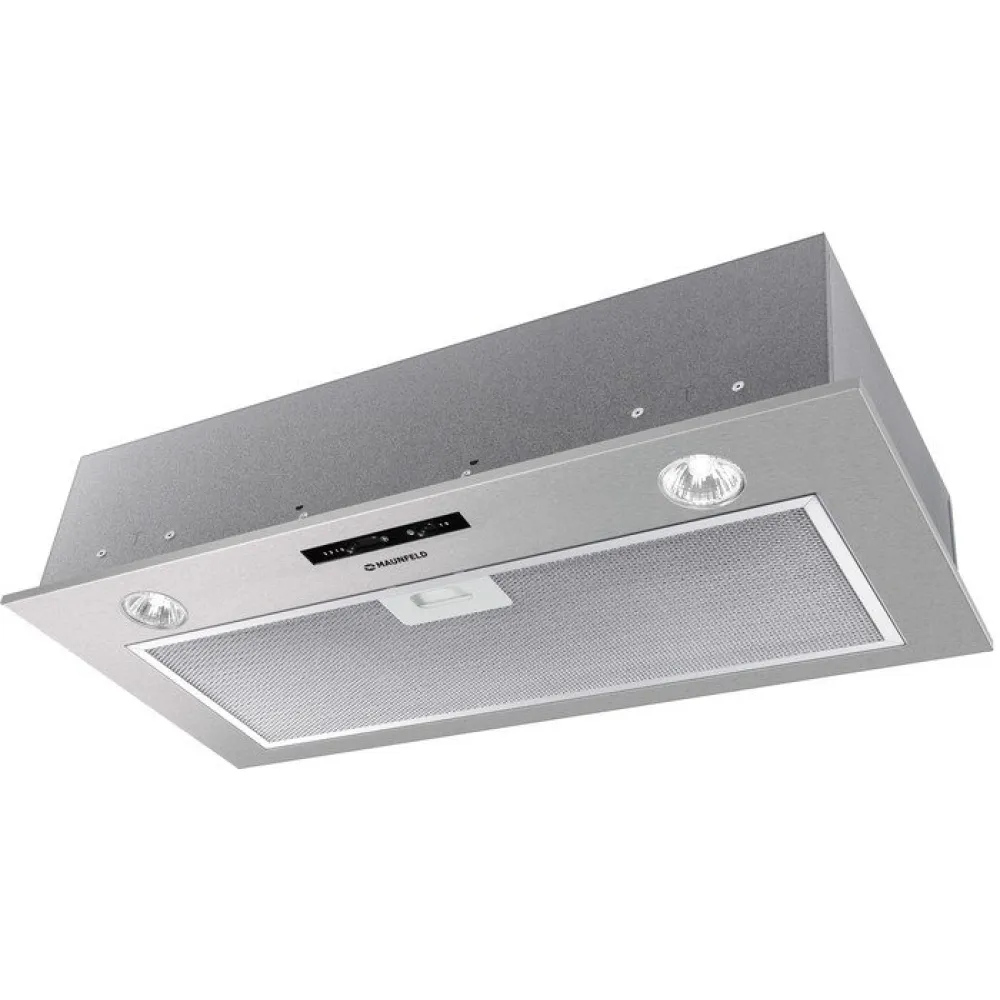 конструкция скрытая, монтаж для встраивания, ширина 60 см, управление механическое/слайдерное, производительность мотора 850 м3/ч, цвет нержавеющая сталь