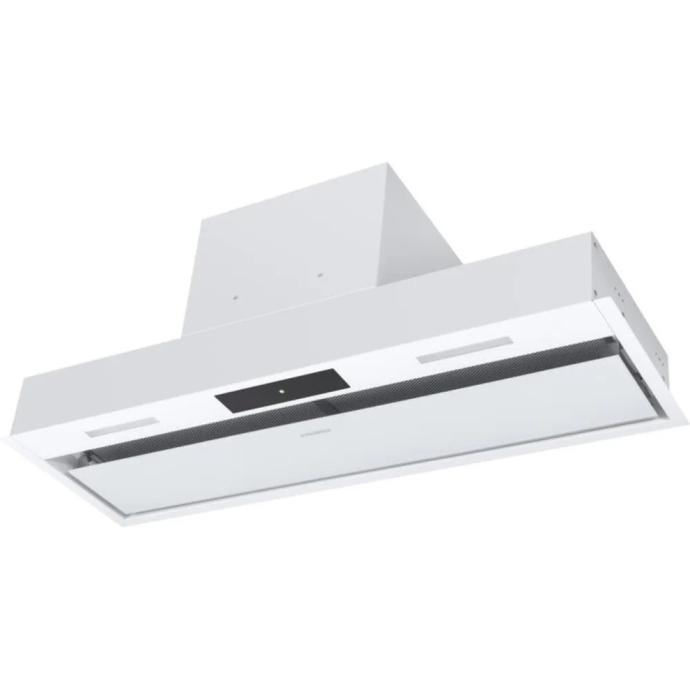 конструкция скрытая, монтаж для встраивания, ширина 89.7 см, управление жестами, производительность мотора 1050 м3/ч, цвет белый