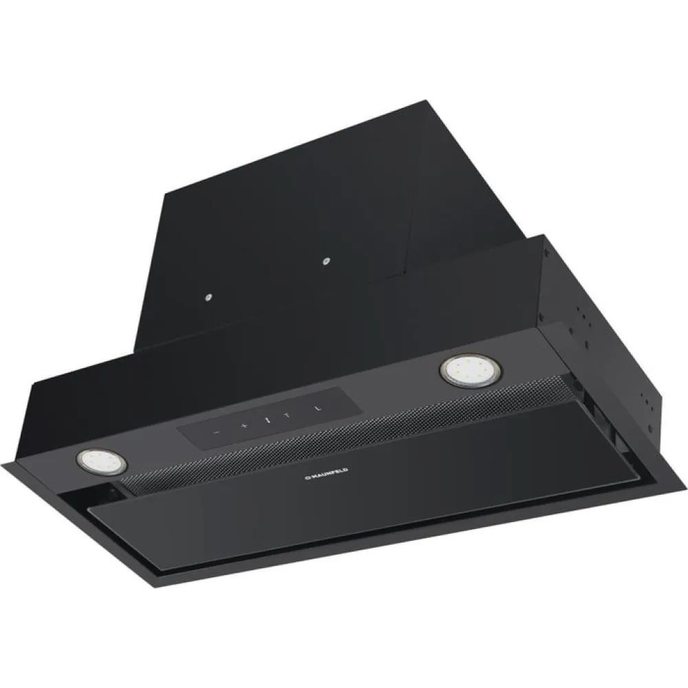 конструкция скрытая, монтаж для встраивания, ширина 59.7 см, управление сенсорное, производительность мотора 800 м3/ч, цвет черный