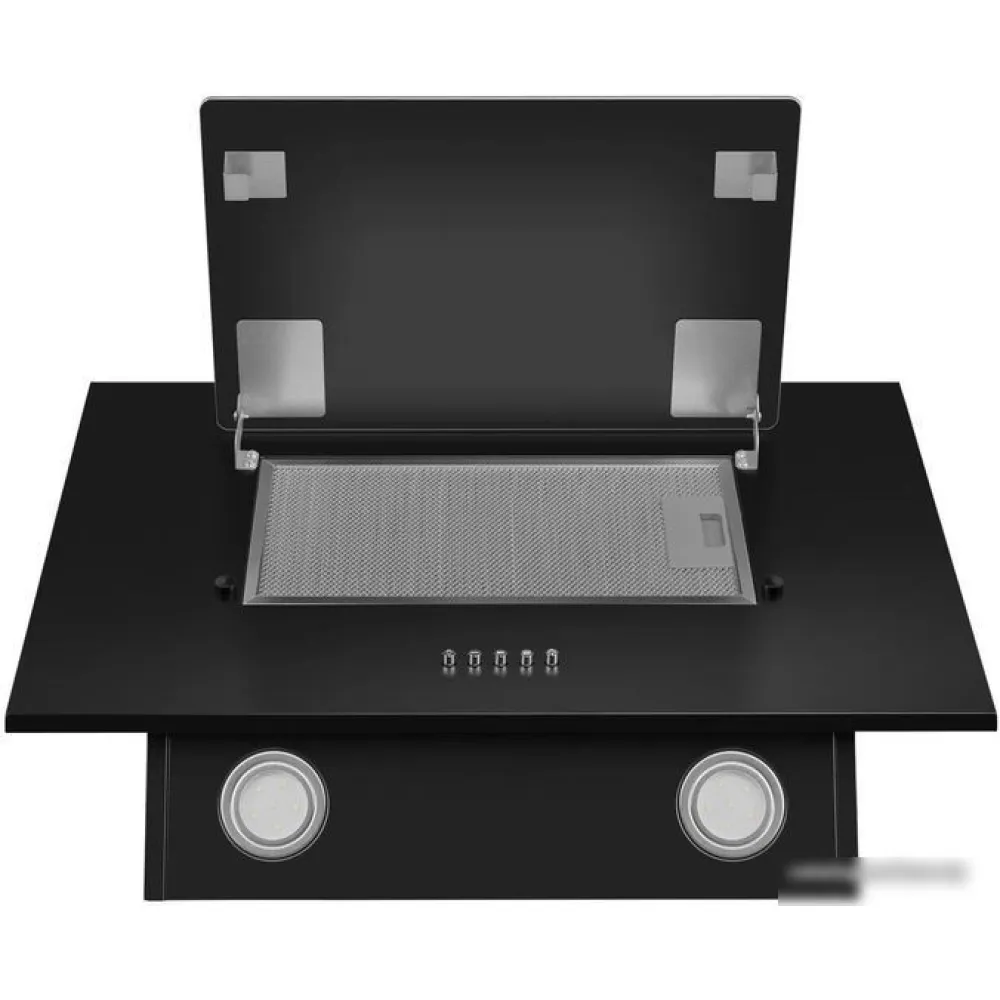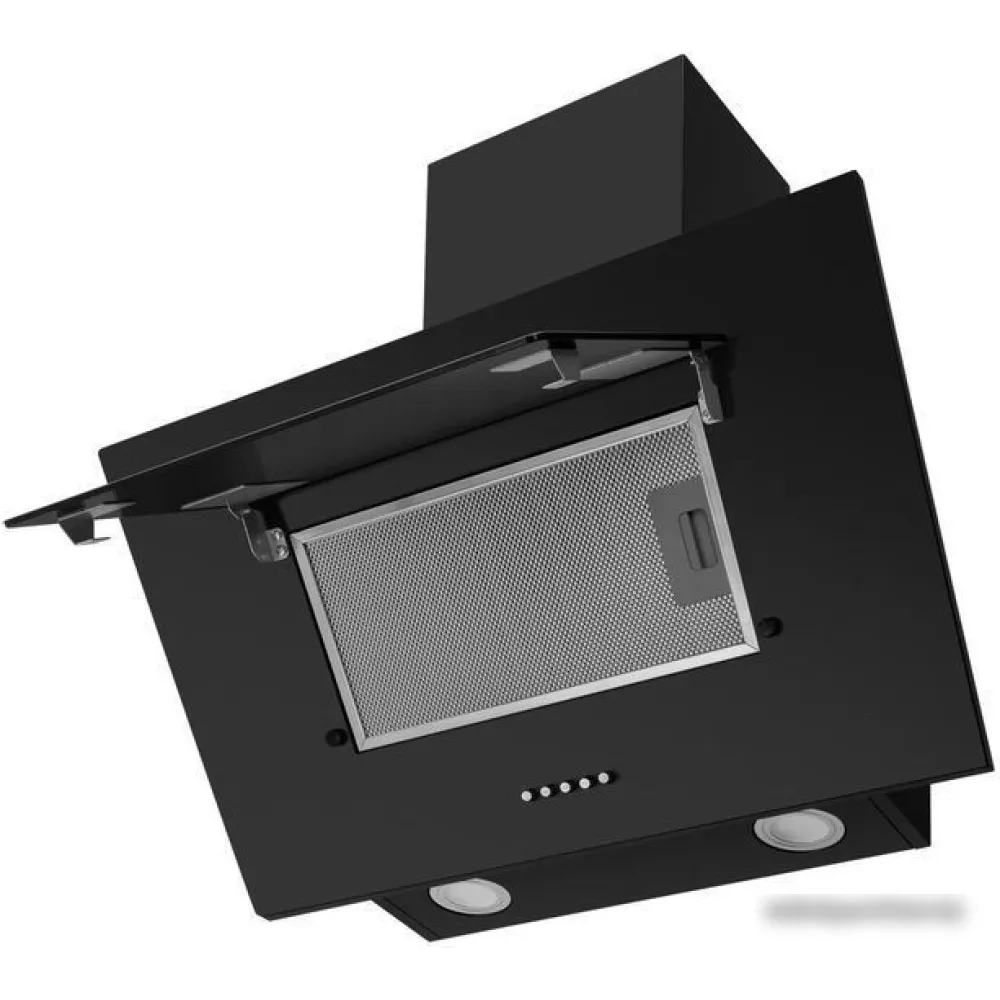 конструкция наклонная, монтаж настенный, ширина 60 см, управление механическое/кнопочное, производительность мотора 700 м?/ч, цвет черный