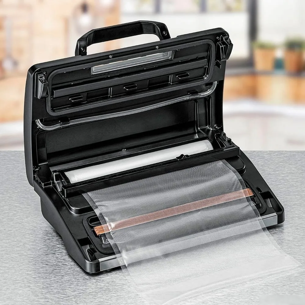 | Информация | - Вакууматор Rommelsbacher VAC 585 - это современное устройство для герметичной упаковки продуктов, позволяющее сохранить их свежесть и вкусовые качества на длительное время. Благодаря удобному управлению одной рукой и сенсорной панели с индикатором состояния, процесс вакуумирования становится максимально простым и интуитивным. - Встроенный отсек для рулонов с резаком позволяет легко нарезать необходимую длину упаковочного материала, а двухпоршневой насос обеспечивает производительность до 20 литров в минуту и высокий уровень вакуума до -0,9 бар. Электронный контроль температуры запаивания и двойной сварной шов шириной по 2,5 мм гарантируют надежное и качественное запечатывание пакетов. - Rommelsbacher VAC 585 поддерживает как ручное, так и автоматическое вакуумирование, имеет импульсный режим, специальные настройки для влажных, сухих и мягких продуктов, а также программу маринования. Возможность откачивания воздуха из контейнеров расширяет функциональность прибора. - Вакуумная камера оборудована съемной вставкой для сбора жидкости, имеется отсек для хранения кабеля. В комплекте поставляются 10 пакетов, 1 рулон и вакуумный шланг, что позволяет сразу приступить к использованию устройства без дополнительных покупок. |