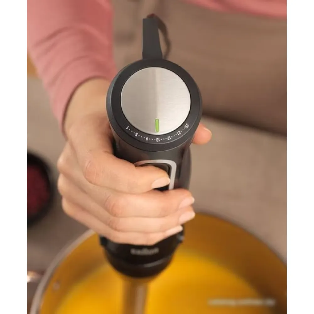 | Информация | Благодаря новым насадкам вы получите безграничную универсальность при приготовлении пищи с помощью MultiQuick 5 Pro. Оснащенный технологией PowerBell VPlus, MultiQuick 5 Pro обеспечивает в 4 раза более точные результаты *. Скорость можно регулировать только одной рукой, а 25 легко регулируемых ступеней эффективно сочетаются с мощным двигателем мощностью 1000 Вт – вы будете в восторге. |