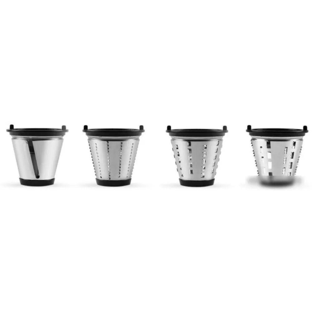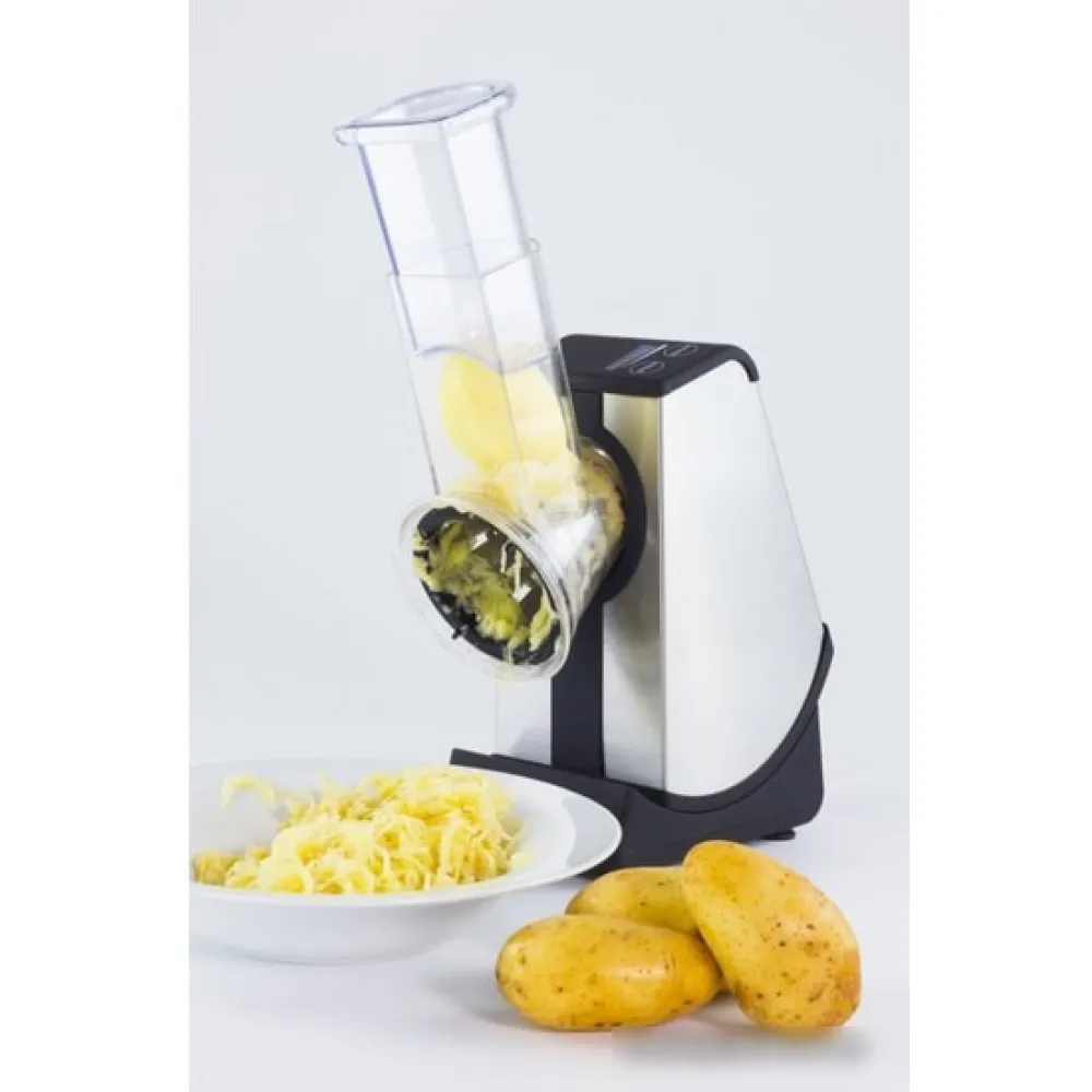 | Информация | Управление устройством осуществляется при помощи сенсорной панели управления и 5 уровней скоростей. Благодаря продуманной конструкции, натертые фрукты или овощи сами попадают в подставленную тарелку/емкость. Имеется режим наклона, для более удобного выбора позиции. Измельчитель оснащен четырьмя сменными барабанами (диаметр 75 мм), мощным двигателем, что делает его своеобразным аналогом сразу нескольким кухонным приборам. Широкая загрузочная горловина позволяет помещать в устройство даже большие продукты (50х50 мм). Задержка безопасности при включении – 3 секунды. |