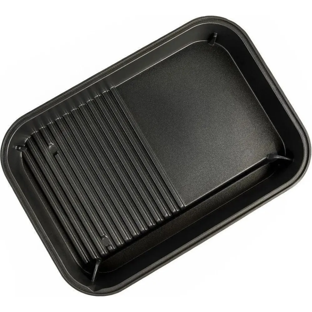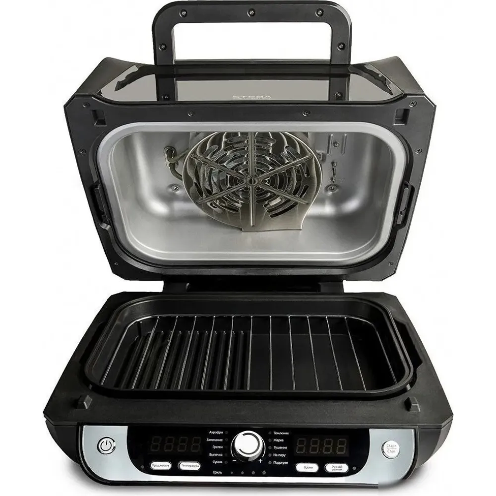 | Комплект поставки | Чаша-сковорода с антипригарным покрытием и рельефной поверхностью для жарки, выпечки, тушения и приготовления соусов. Решетка для гриля с антипригарным покрытием. Корзина конвекционная для аэрофритюра, запекания, сушки и приготовления на пару. Решетка-гриль из хромированной стали. Щипцы кухонные для переворачивания и подачи продуктов. Прихватки силиконовые, термостойкие. Щёточка для очистки Крышка с ручкой из нержавеющей стали. |