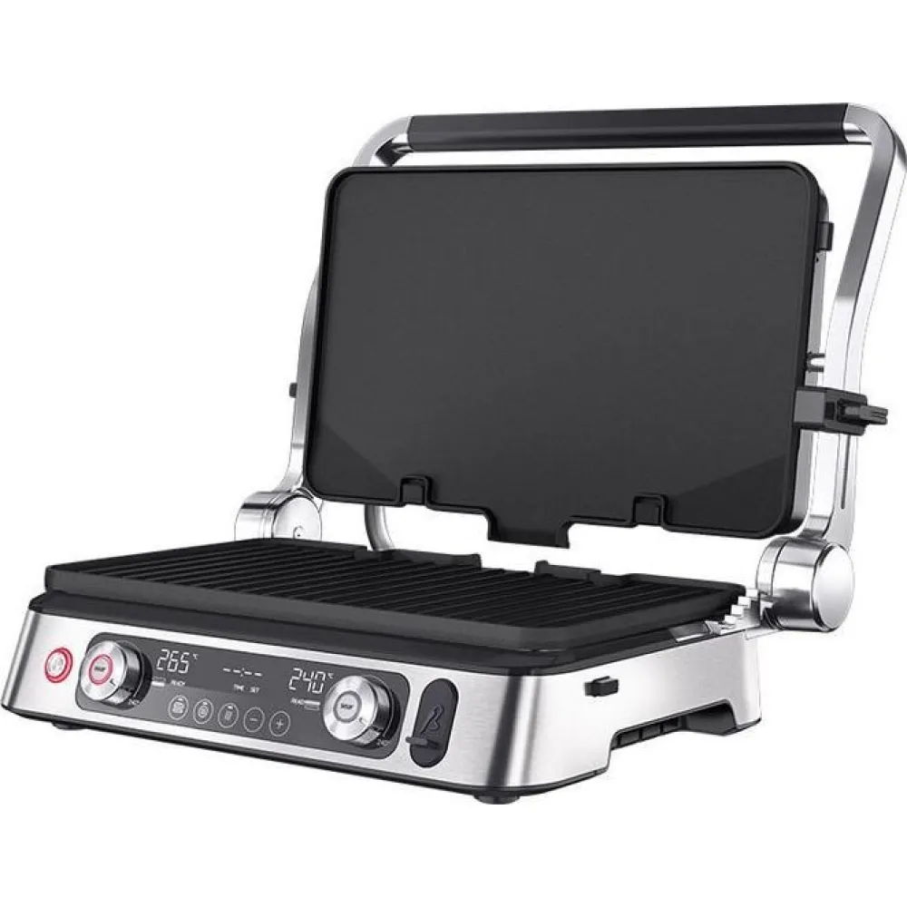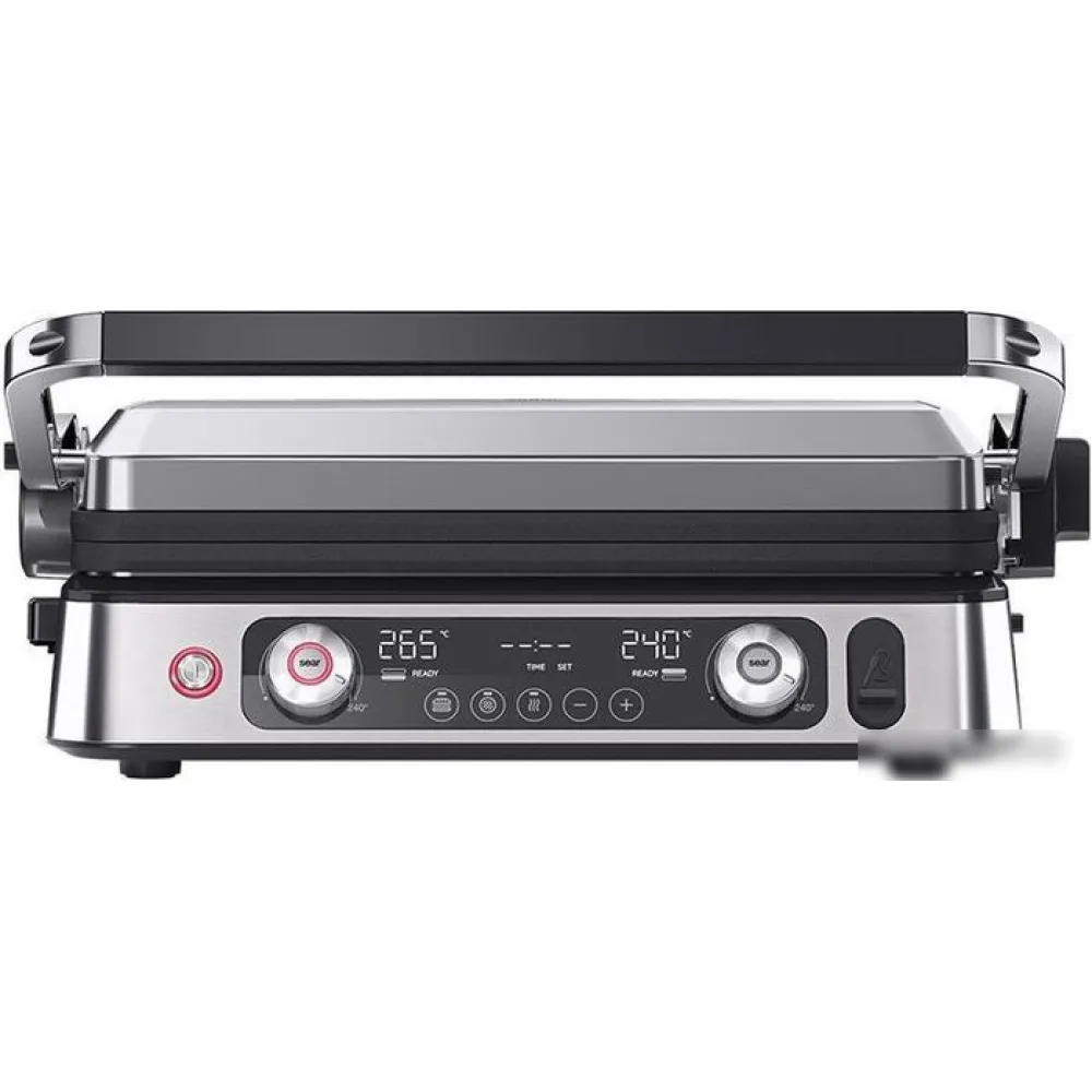 Электрогриль со съемными нагревательными пластинами: гладкая и ребристая, термометр