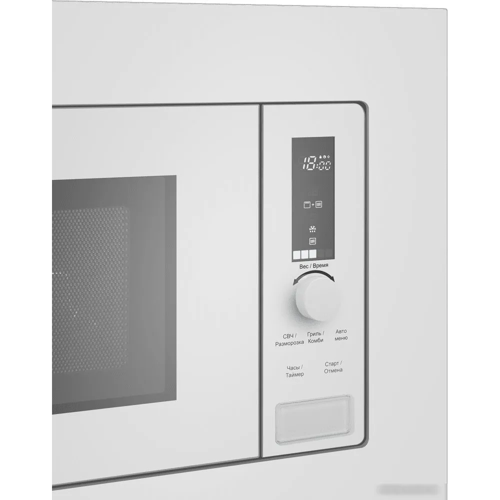 встраиваемая, микроволны и гриль, объем 20 л, выходная мощность микроволн 700 Вт, управление электронное, автоприготовление, авторазмораживание, цвет белый