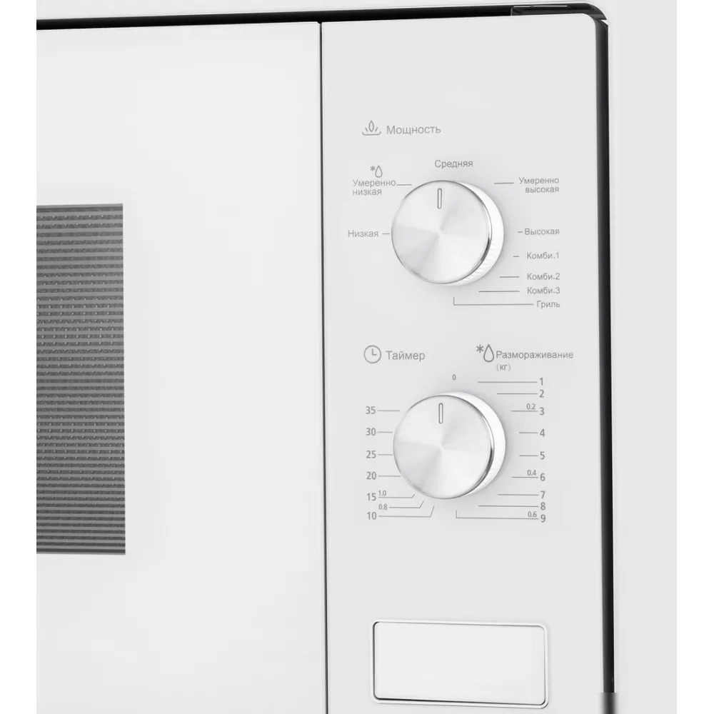 встраиваемая, микроволны и гриль, объем 20 л, выходная мощность микроволн 800 Вт, управление механическое, цвет белый