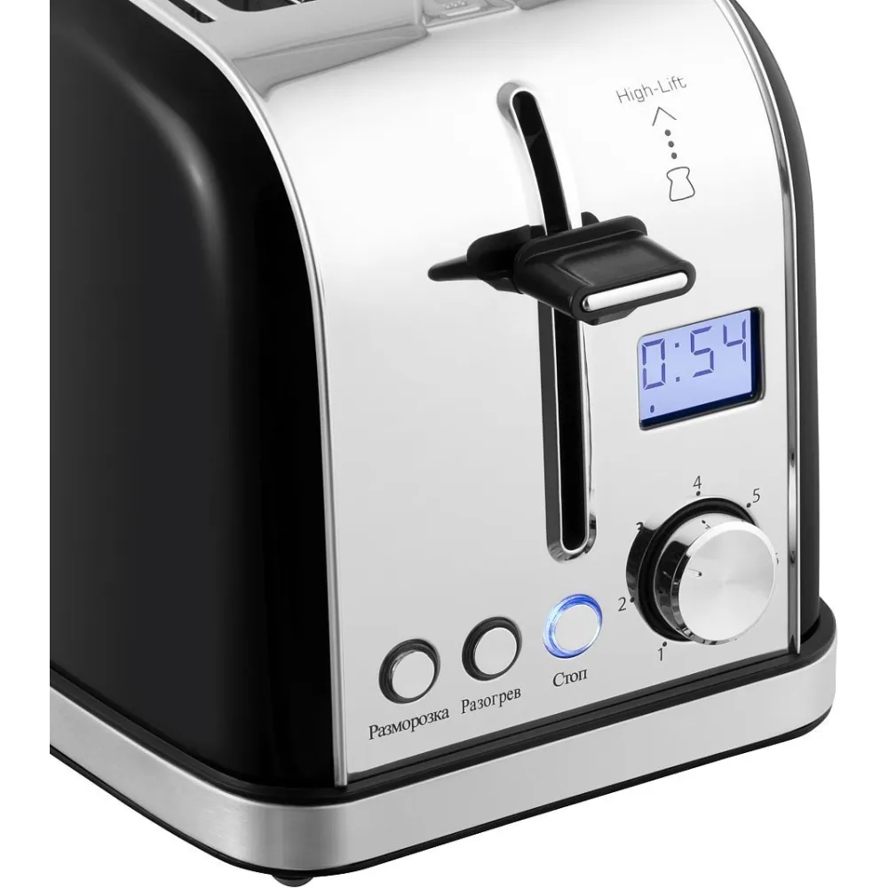950 Вт, количество тостов: 2, корпус: металл, 7 степеней обжаривания, цвет нержавеющая сталь/черный