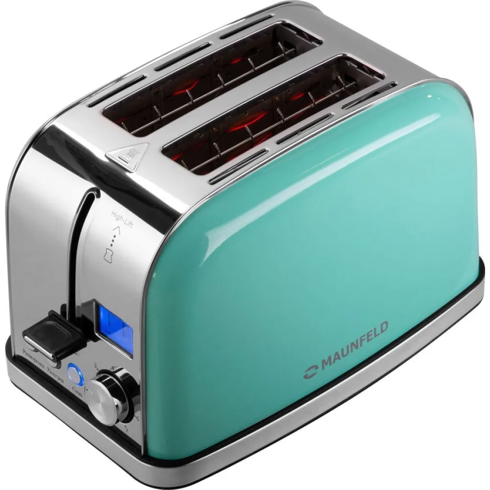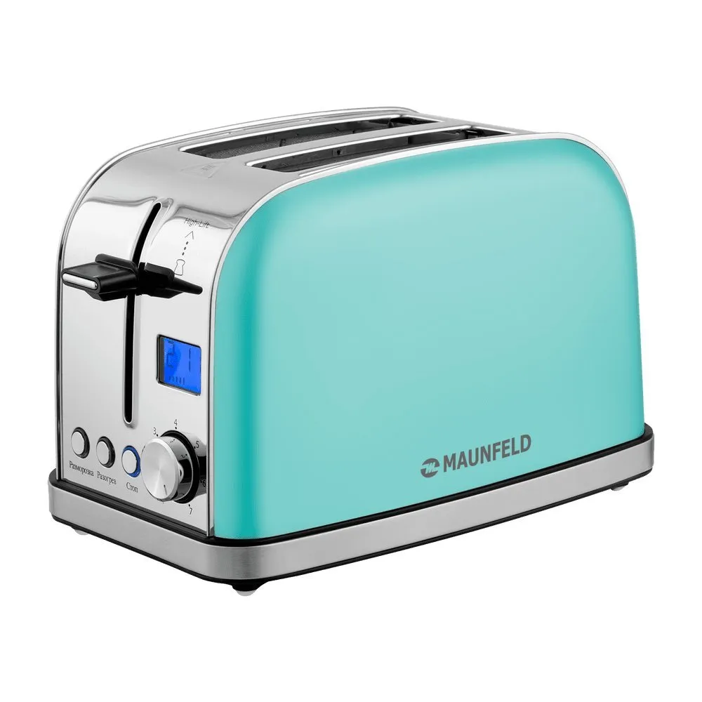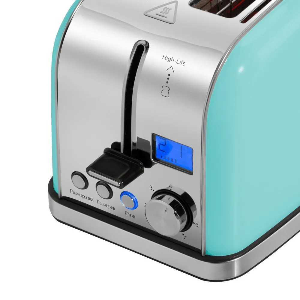 950 Вт, количество тостов: 2, корпус: металл, 7 степеней обжаривания, цвет мятный/нержавеющая сталь