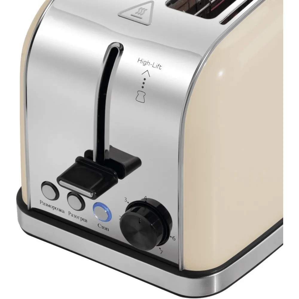 950 Вт, количество тостов: 2, корпус: металл, 7 степеней обжаривания, цвет бежевый/нержавеющая сталь