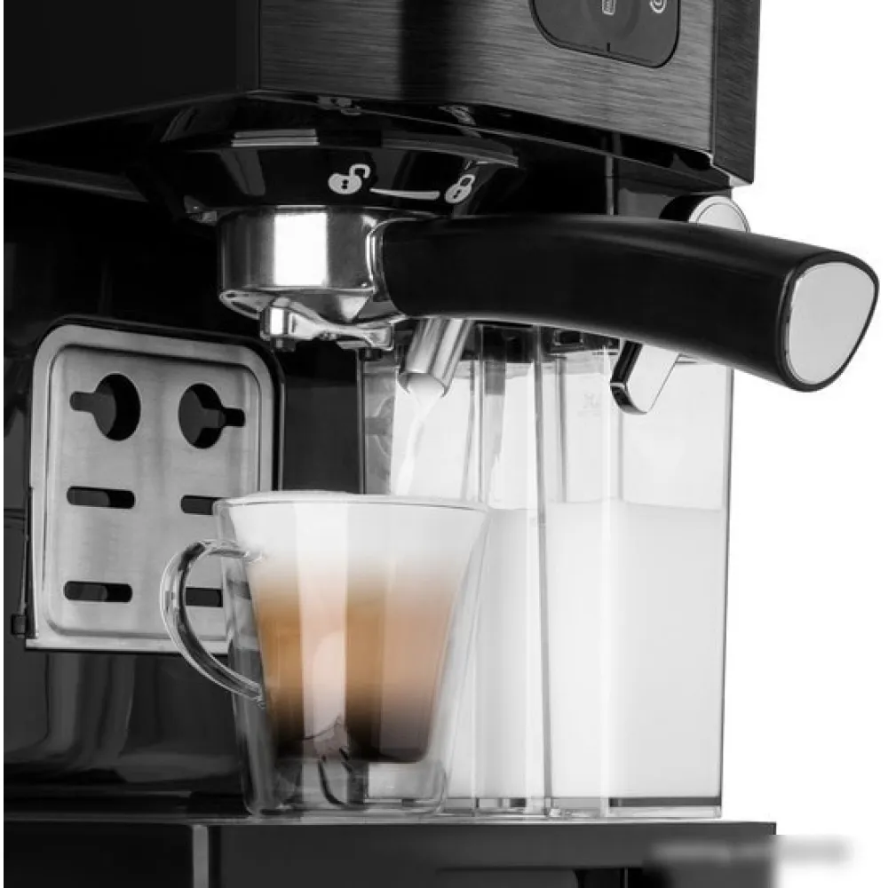 рожковая помповая кофеварка, 1450 Вт, корпус пластик, капучинатор автоматический, используемый кофе: молотый, цвет черный