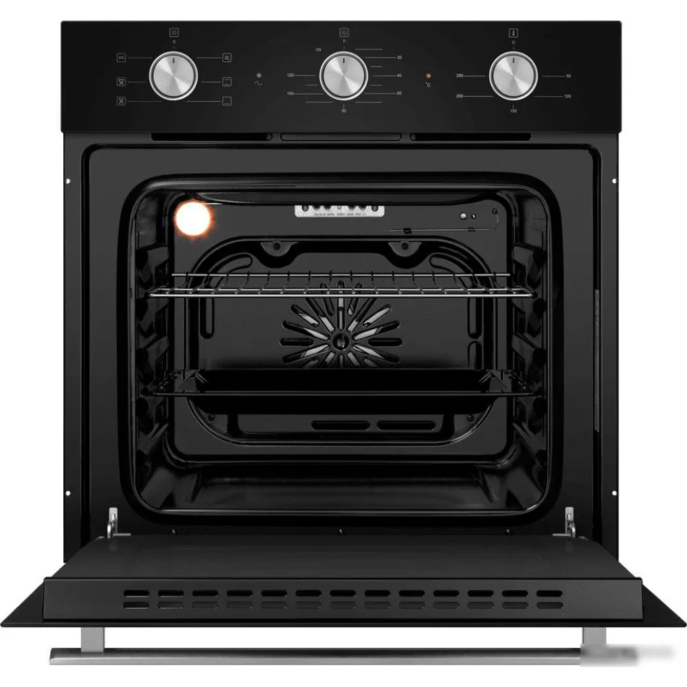 электрический с конвекцией, объем 60 л, утапливаемые переключатели, 6 режимов, очистка паровая, 3 стекла в дверце, направляющие проволочные