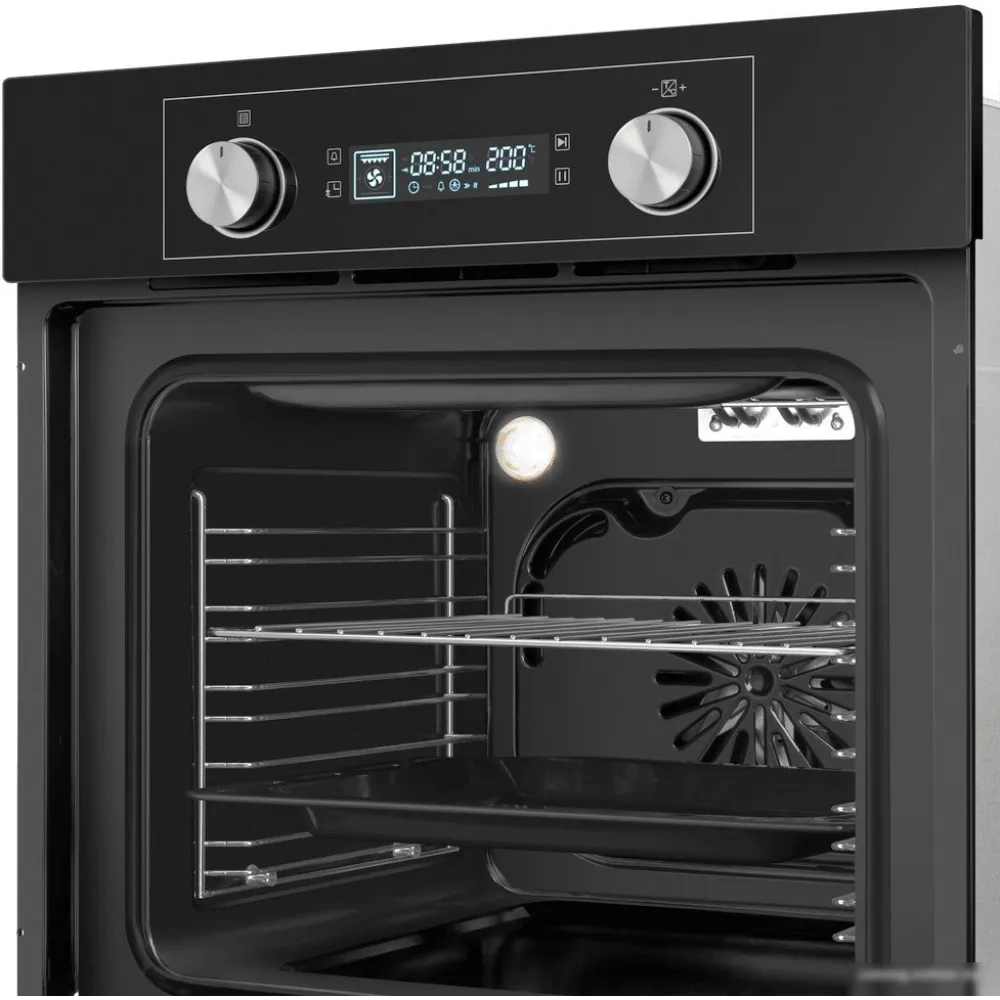 электрический с конвекцией, объем 60 л, утапливаемые переключатели, 6 режимов, очистка паровая, направляющие проволочные