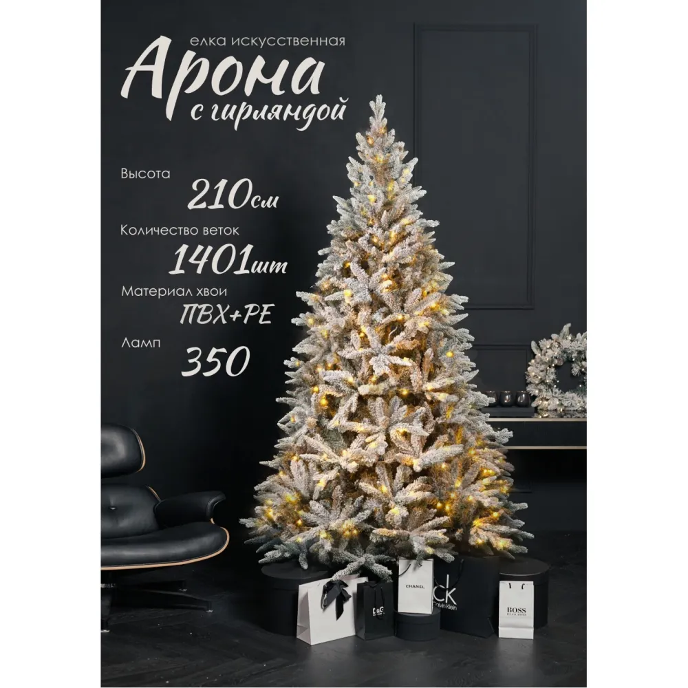 искусственная ель, литая+ПВХ, 2.1 м, цвет зеленый, подсветка