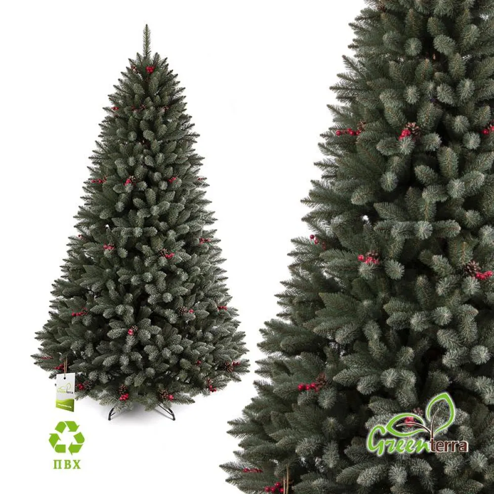 искусственная ель, 2.2 м, цвет зеленый, шишки