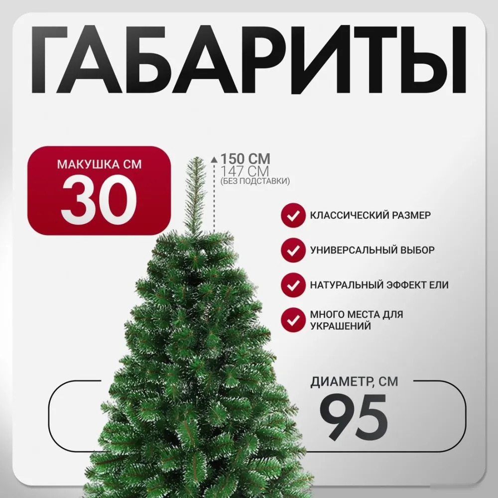 искусственная ель, литая+ПВХ, 1.5 м, цвет зеленый
